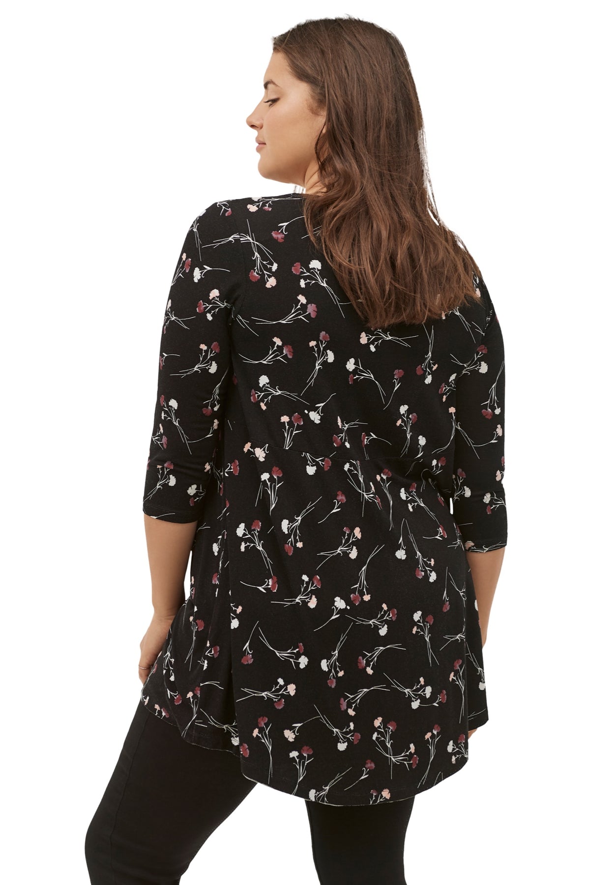 I ordered the red and black tunic to wear with leggings This tunic style covers the extra pounds in my behind The top drapes perfectly The fabric is perfect for cooler weather I am extremely happy with my purchase