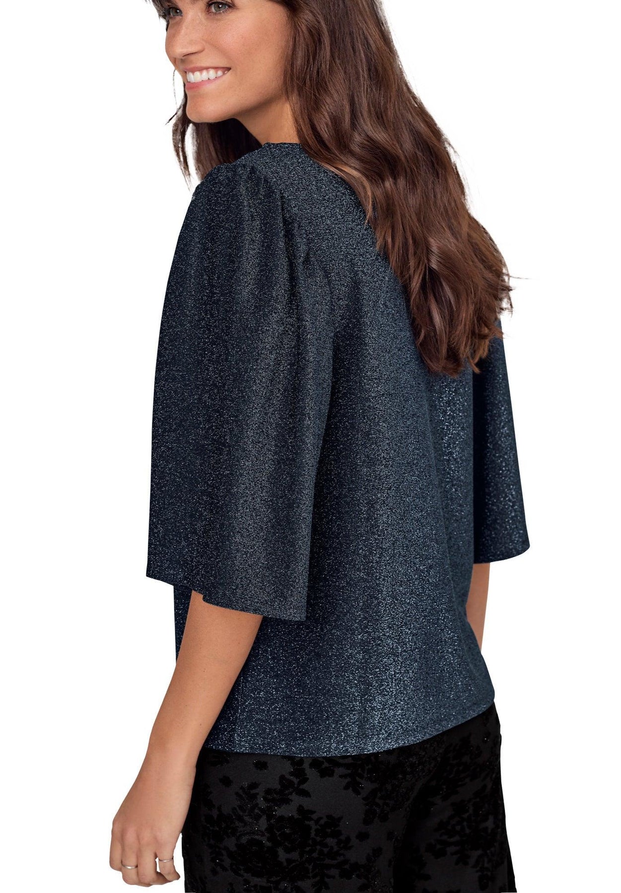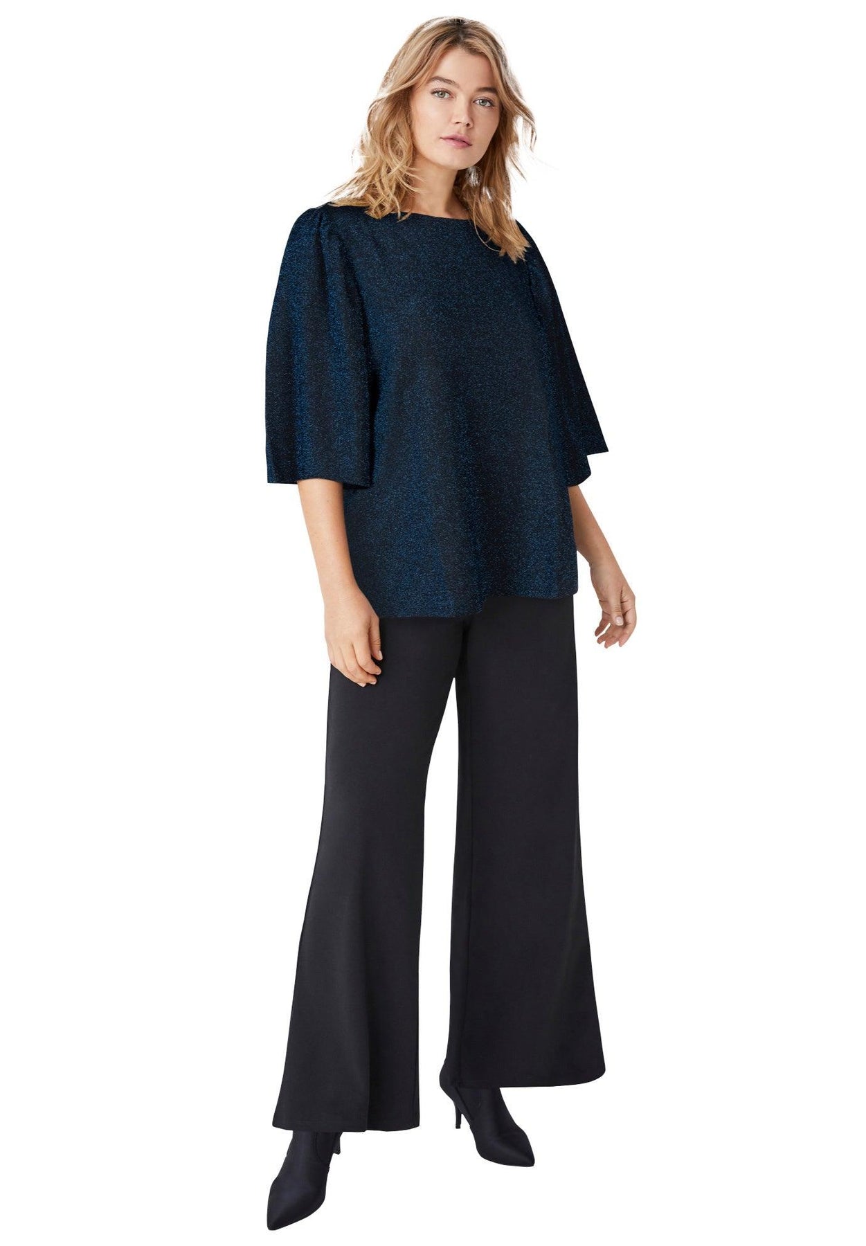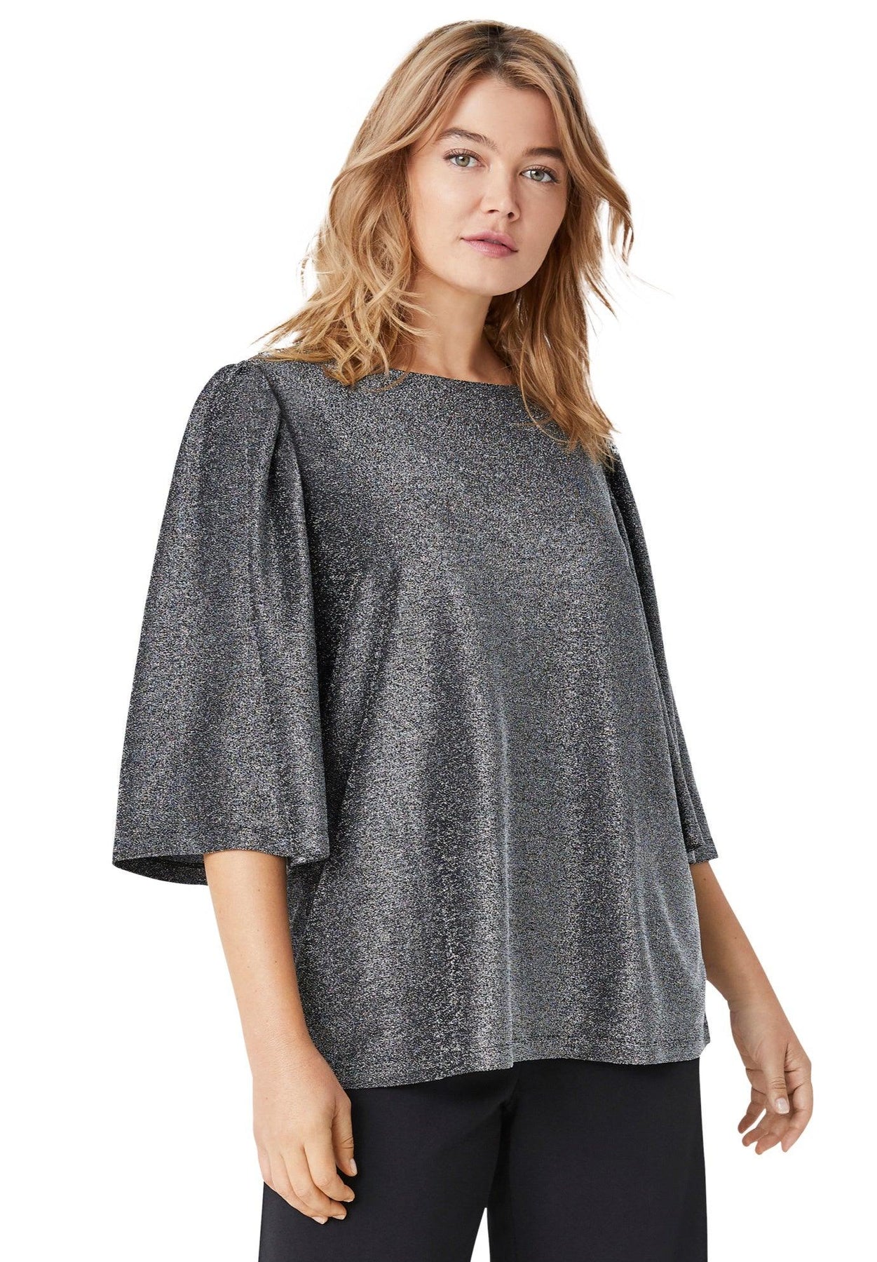 This tee packs a pretty punch with a soft, shimmery knit fabric and sleeves that wow. Pair it with everything, from leather pants to work trousers or denim.