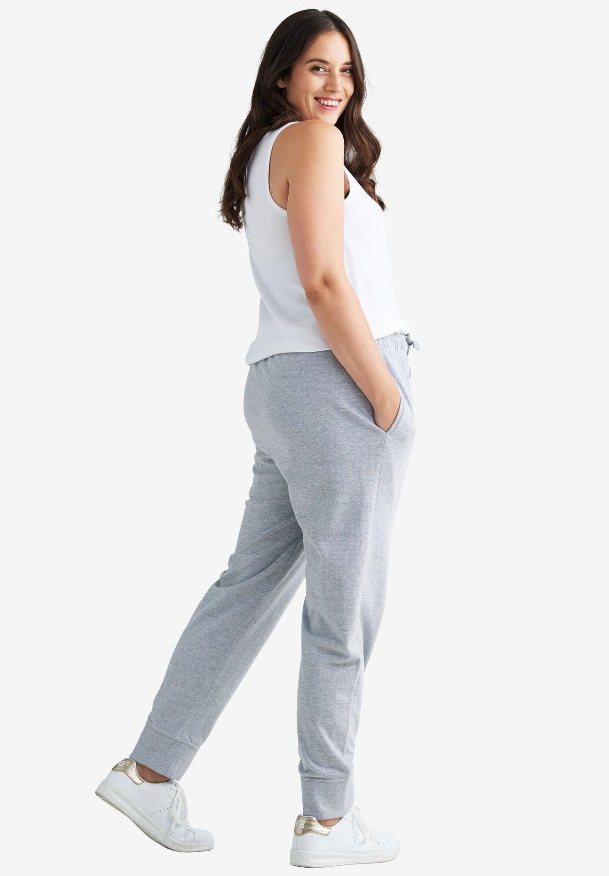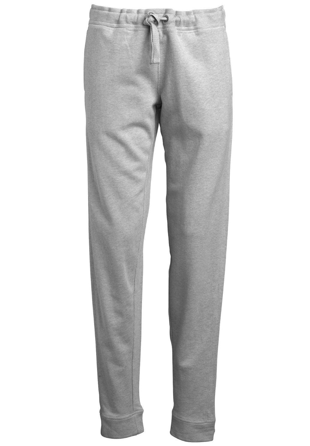 Sweatpants have elastic waistband with drawstring and grommets. Side seam pockets. Ribbed cuffs.