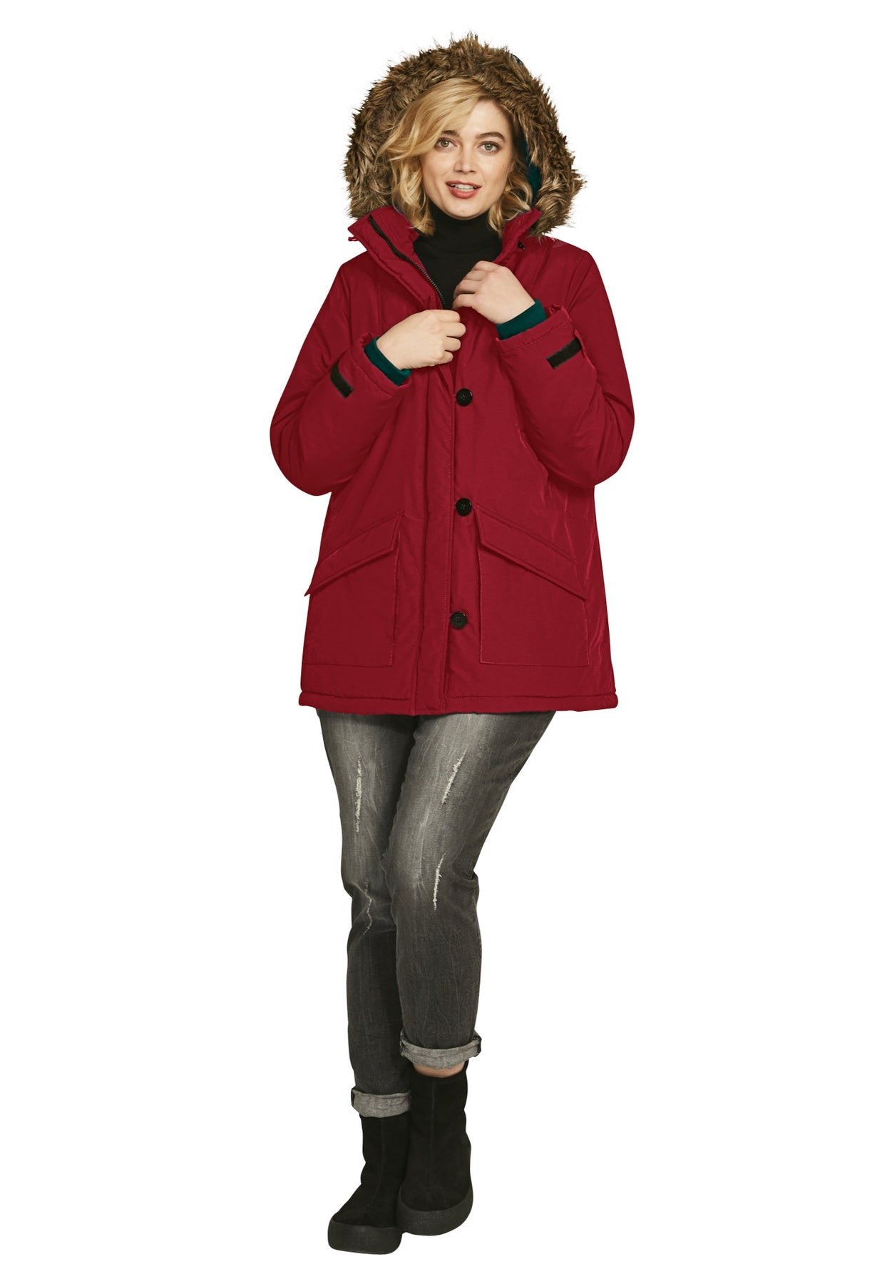 I absolutely love this coat I just bought I got it in black in size 4X as I am a big lady I think the double zipper is a pain to do so I just use the buttons They work great The pockets on the outside are wonderful and there is an inside pocket too The hood is terrific and I will use it when theres snow blowing or rain or hail The outer material of the coat feels like its been treated special to keep the coat from getting soaked from rain or wet weather This is a A plus coat in my book
