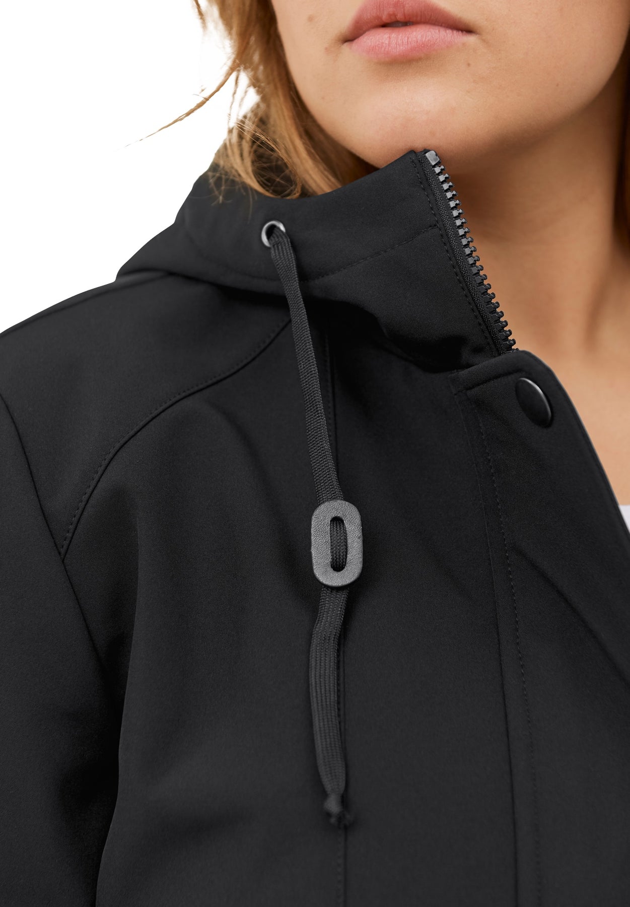 • Funnel neck with drawstring hood, grommets & faux leather cord stoppers
