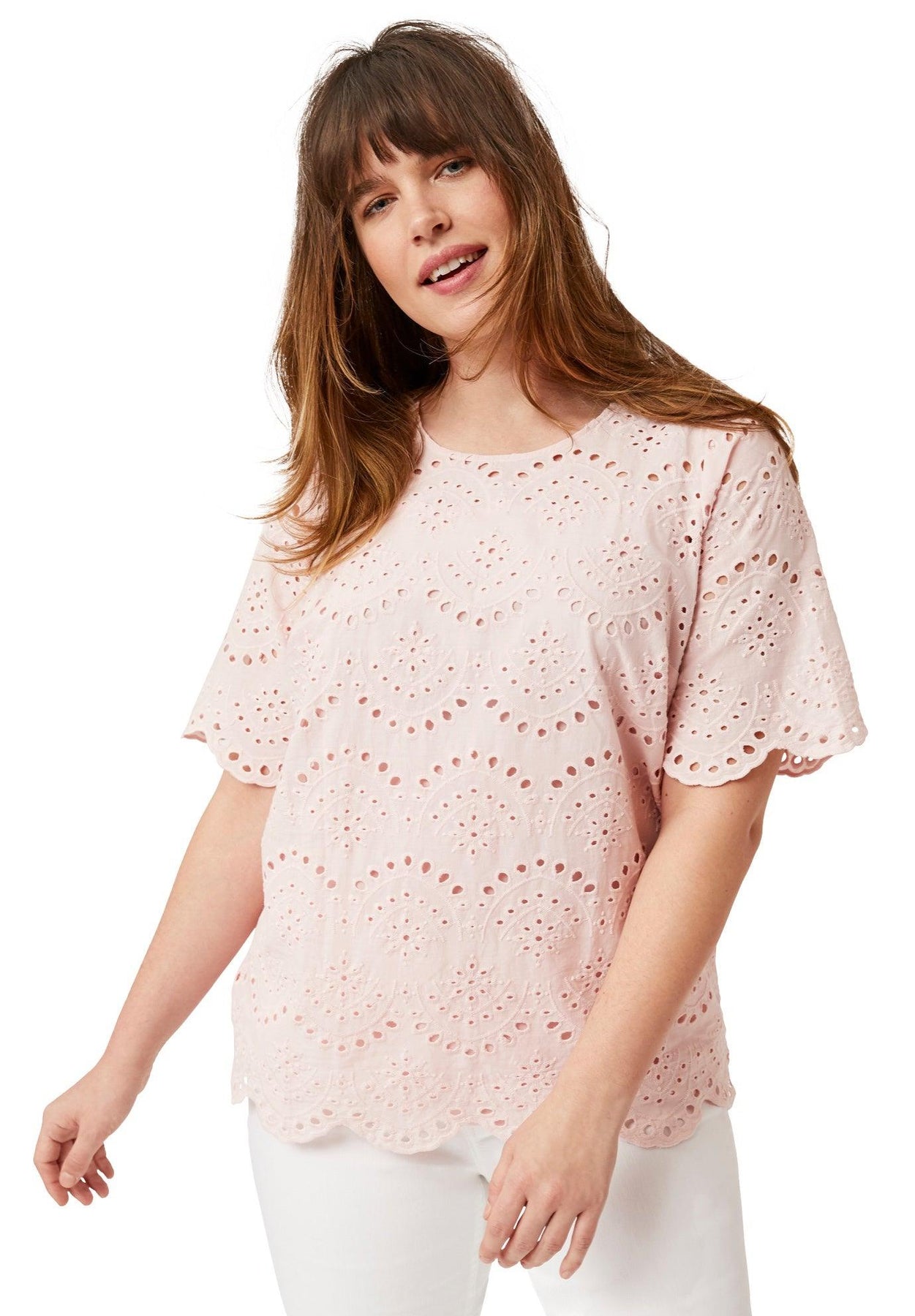 Scalloped Hem Eyelet Blouse