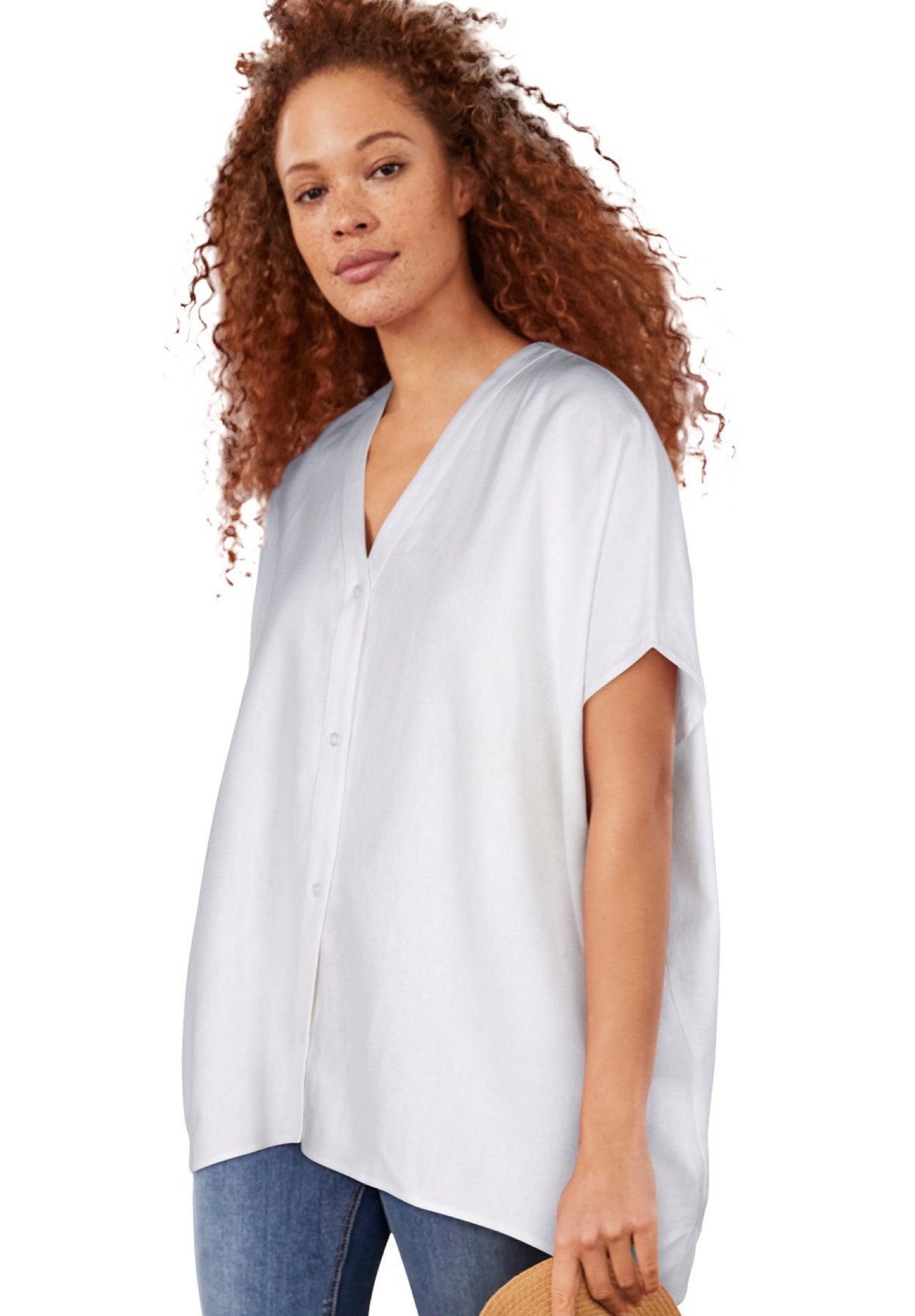 This oversized lightweight linen-blend tunic is a foundation piece for any well-rounded wardrobe. Its easy-carefabric makes it a go-to for travel. Style it with jeans for a casual look or pair it with our linen shorts on vacay!