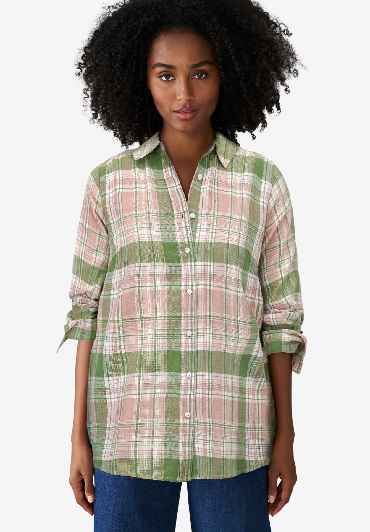 Our soft yarn-dye flannel shirt has all the classic details: shirt collar, button-front styling, long sleeves with button cuff, an inverted back pleat for ease of movement, and a shirttail hem. It's a wardrobe staple you'll love wearing for seasons to come!