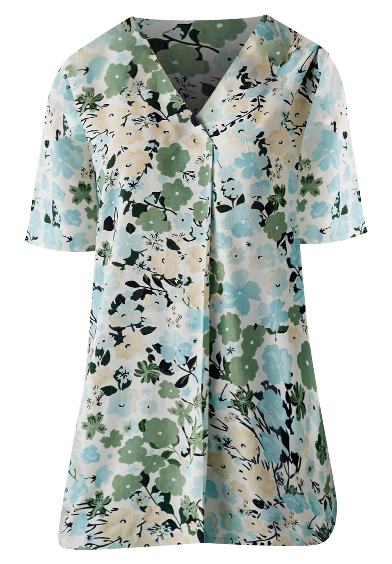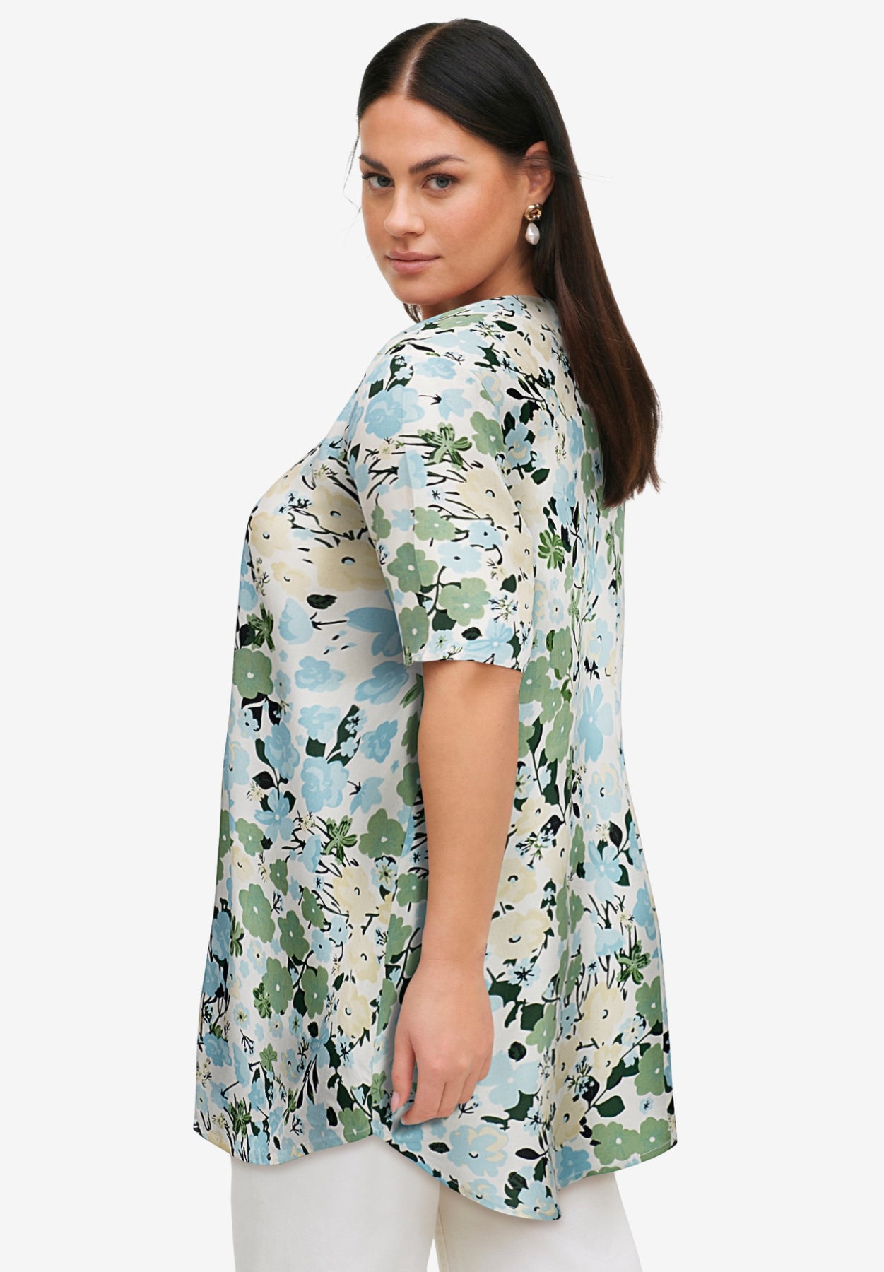 An inverted box pleat below the V-neck gives this tunic a flowy fit that feels as good as it looks. Short, drop-shoulder sleeves give it a relaxed feel perfect with jeans, chinos or leggings.
