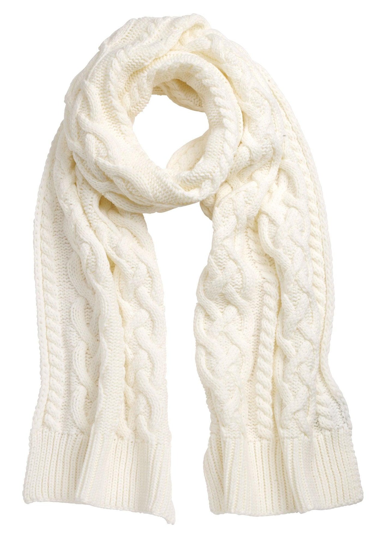 Love this beautiful cream color knit scarf I like scarfs that are long enough and wide enough I can cover head and wrap around my neck wroom to tie or tuck into coat This is perfect for that and quite warm for New York windy winters