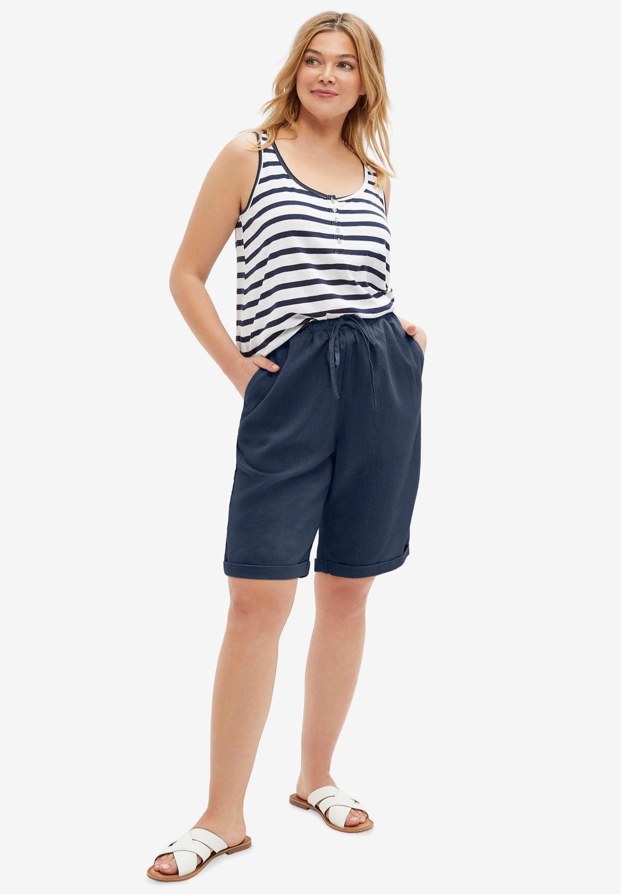 Linen Blend Drawstring Bermuda Shorts | ellos