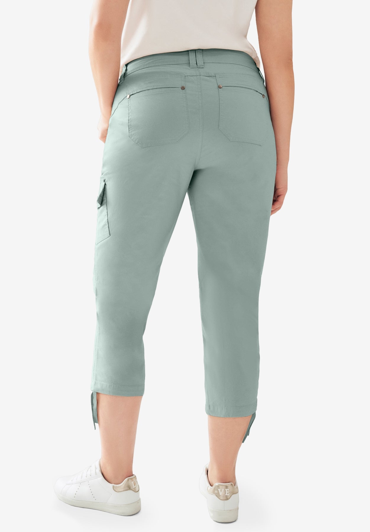 On trend and on point, these stretch cargo capris are crafted from our cotton. They have a comfortable fit with a flattering cropped cut and feminine side ties, perfect for a weekend-casual look. Pair them with your favorite sneakers and a classic tee.