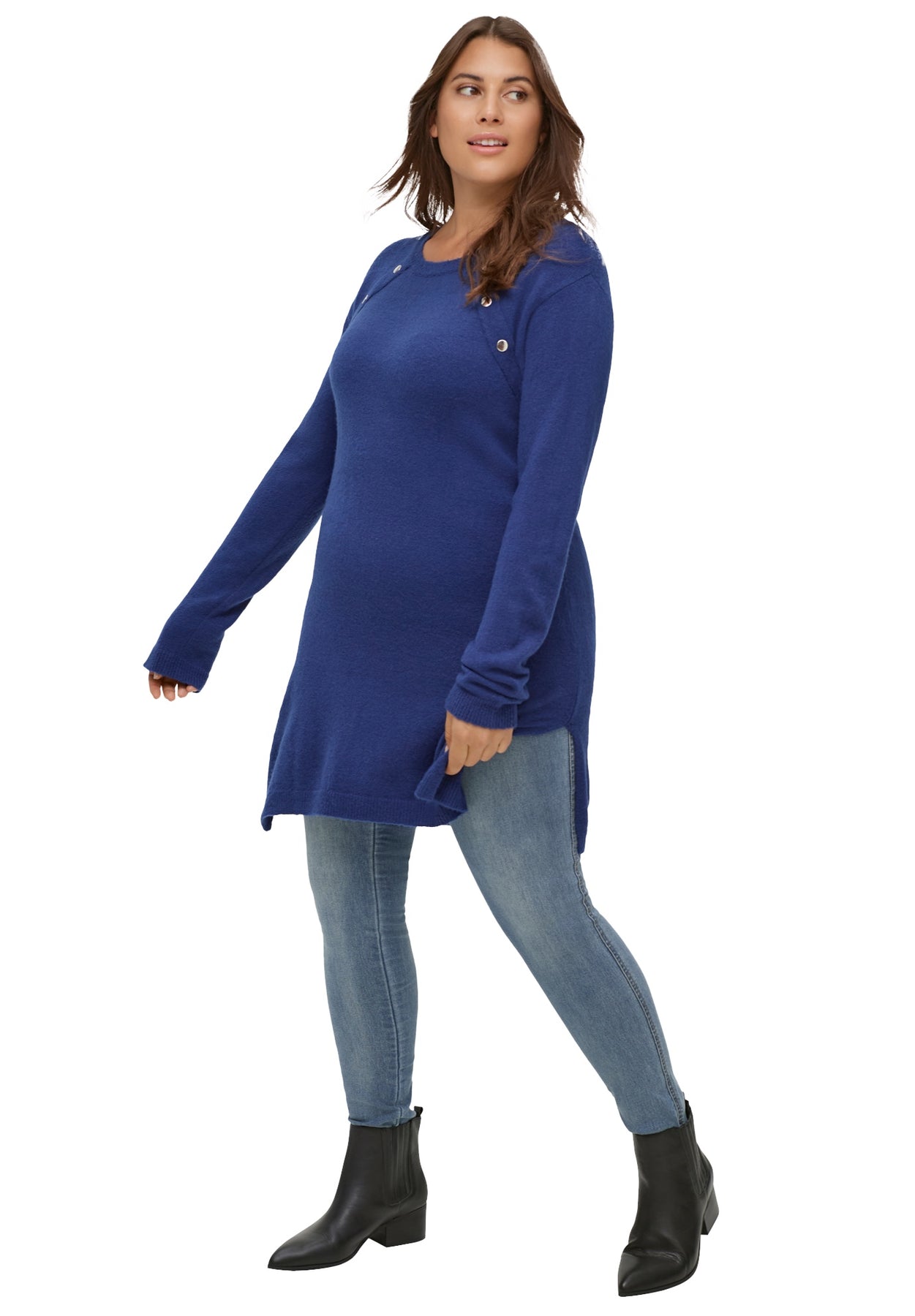 Button-Trim Sweater Tunic