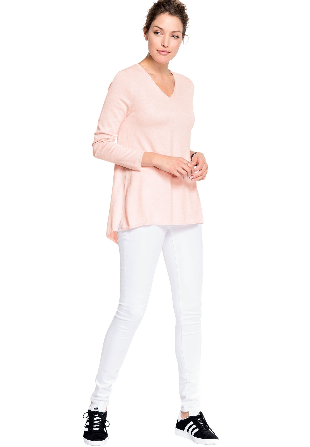 Just enough to keep the office chill and breezy nights at bay, our long-sleeved, lightweight sweater is cut in an A-line silhouette with a flattering V-neckline and inverted back pleat.