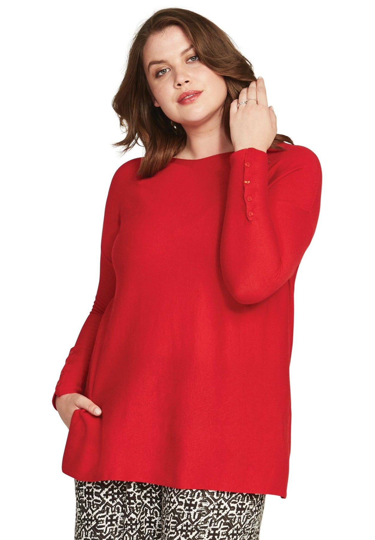 Cool and cloudy days require a pop of color and texture, and this lightweight knit sweater delivers. Features a boatneck with drop shoulders, long sleeves with 3 buttons & a slit at the rib cuff, this will quickly become a favorite.