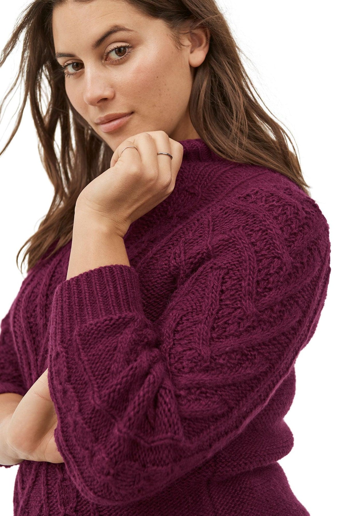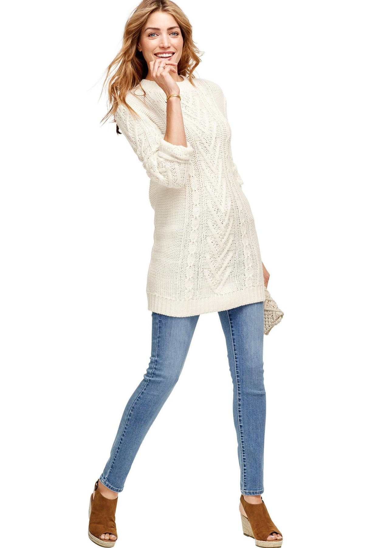 Add this relaxed sweater tunic to your winter knit collection. Crafted in a classic cable knit, the mock neckline gives it a modern touch while the long sleeves keep you oh so cozy. Wear yours with jeans or leather bottoms.