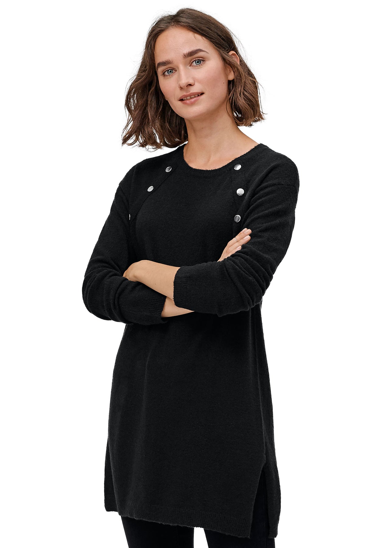 Button-Trim Sweater Tunic