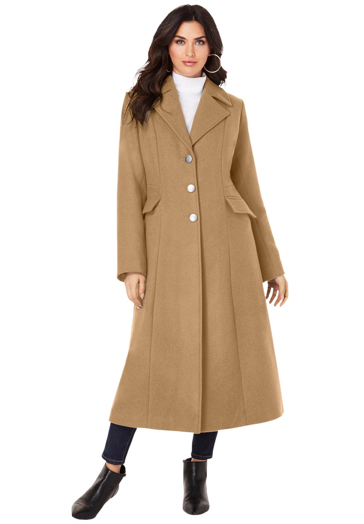 Plus Size Long Tailored Wool Blend Coat | Roaman&