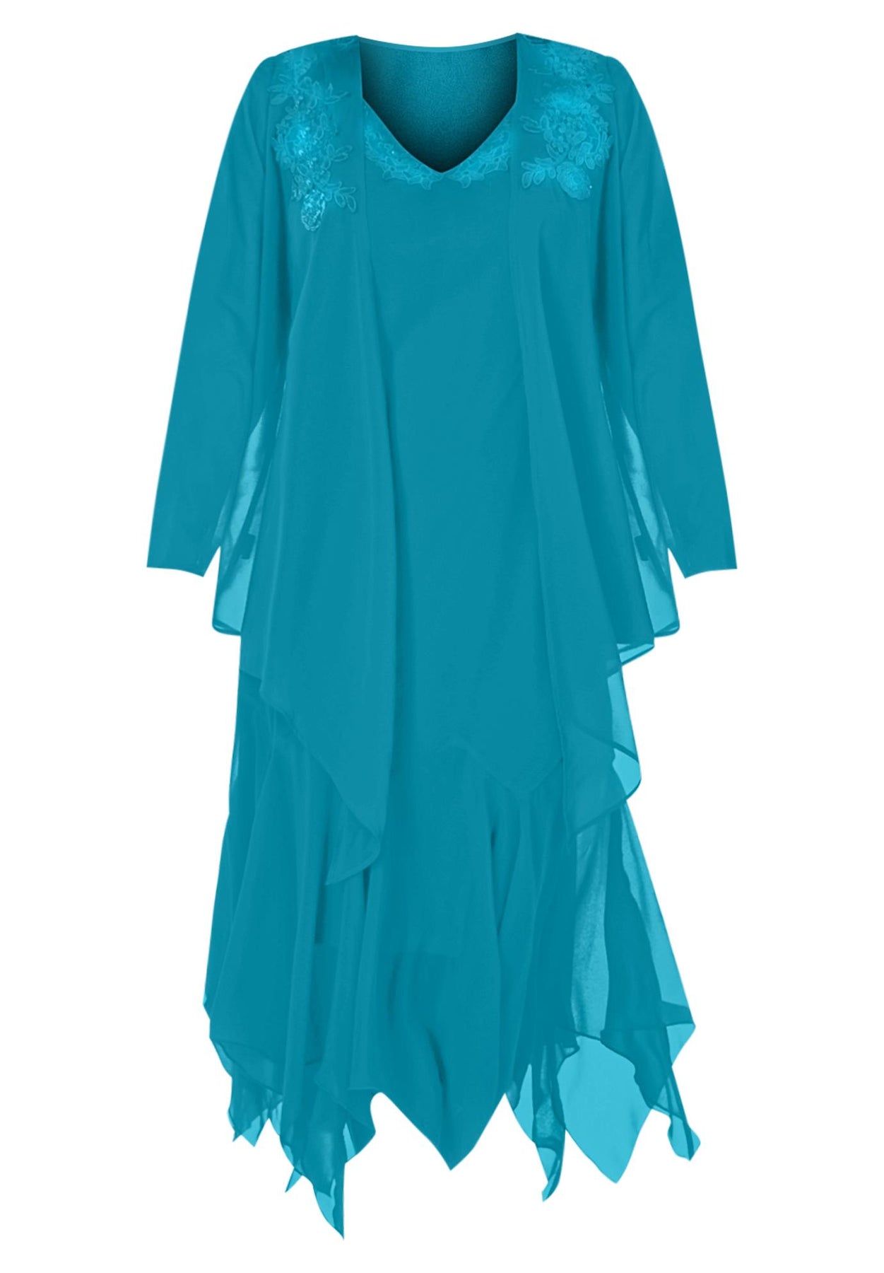A stunning duo. This fit-and-flare sleeveless dress features lace and sequins and is topped with a matching collarless jacket. A drop waist lengthens your silhouette while a fun handkerchief hem adds plenty of movement. Perfect for virtually any season, you can wear it to any special occasion on your calendar that requires a bit of glam.