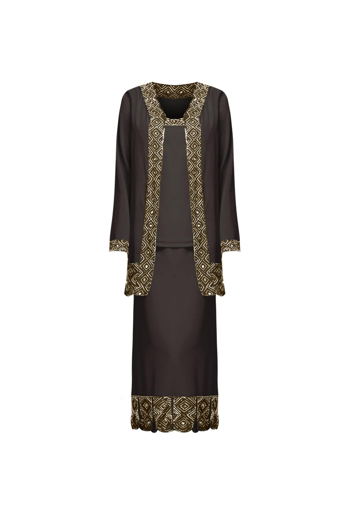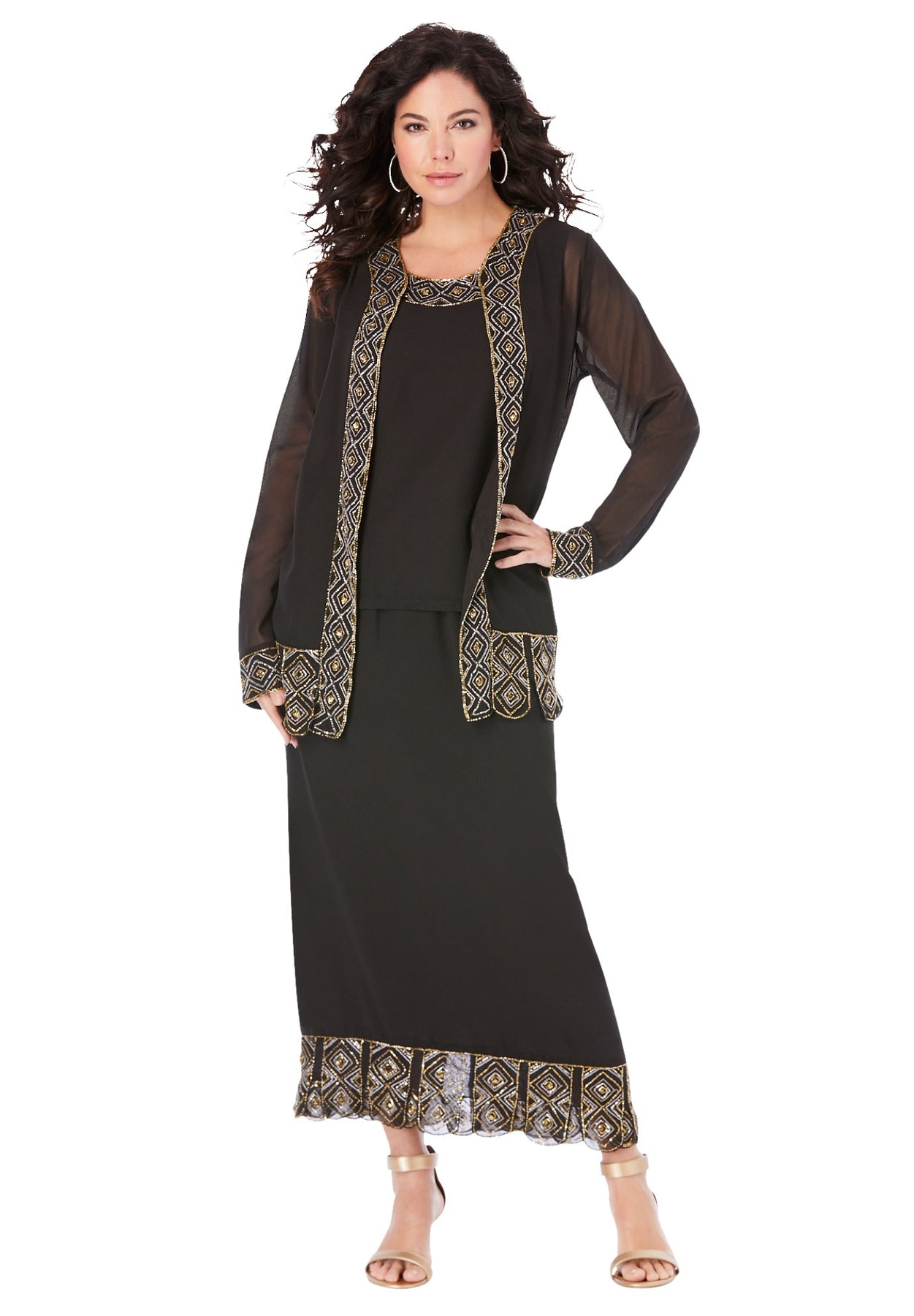 This 3-piece set is a vintage dream come true with a unique carwash hem on the jacket and skirt.