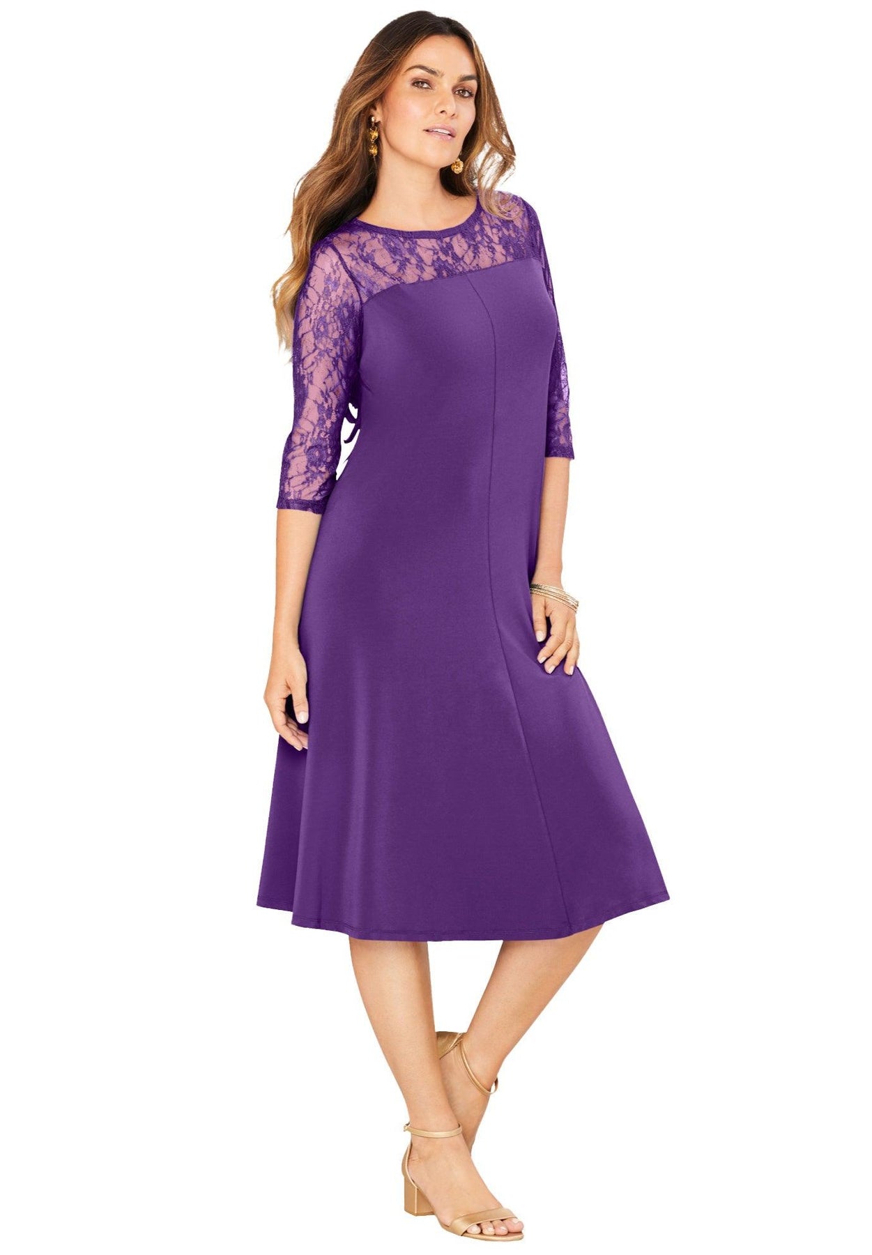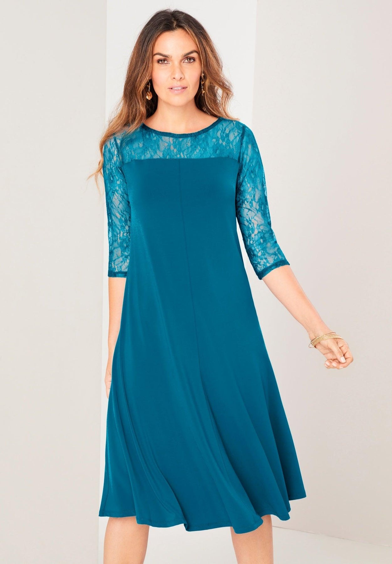 Ultrasmooth® Fabric Illusion Lace Swing Dress | Roaman&