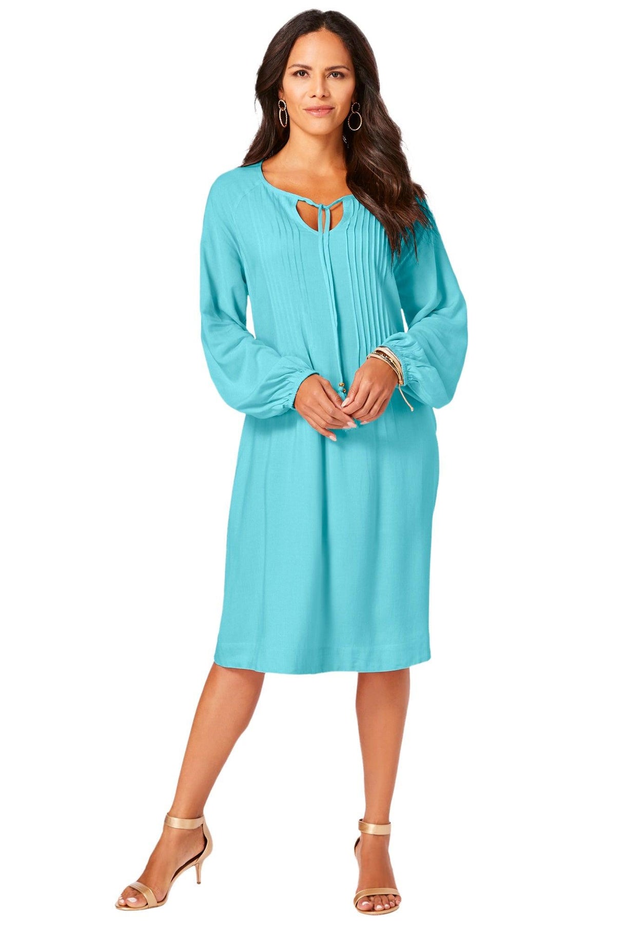 A sweet and feminine frock with pretty details like a pintucked bodice, keyhole neck, tassel ties and blouson sleeves. Swing silhouette. Pair it with your favorite sandals and jewelry for an on-trend look.