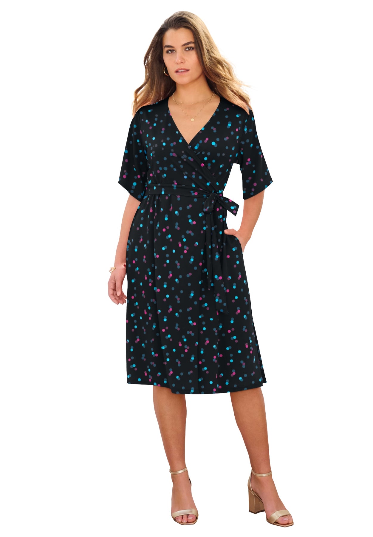 Plus Size Short Sleeve Wrap Fit and Flare Dress | Roaman&
