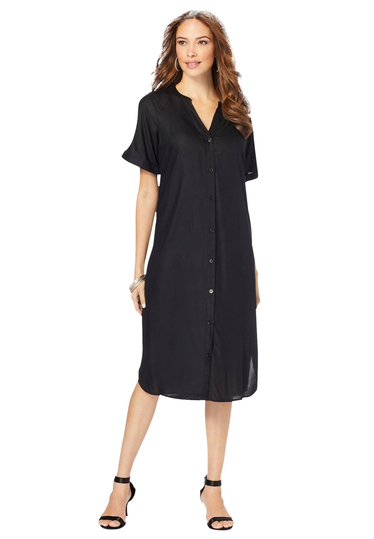 Easy-to-wear crinkle is the perfect fabric for a casual-but-stylish dress like this one. Buttons up the front and features short dolman sleeves with cute cuffs and a shaped shirttail hem. The ultimate one-and-done piece to dress up your look in an instant.