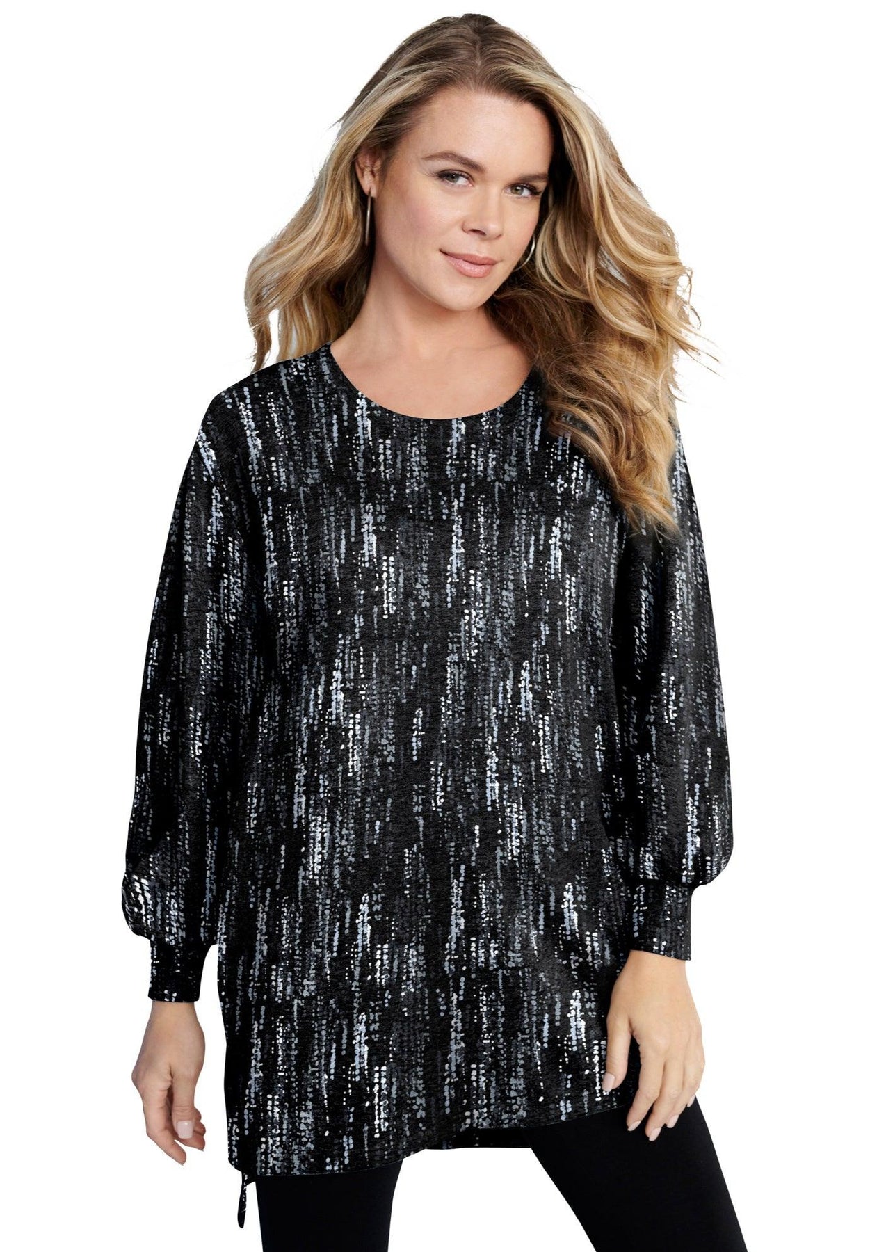 What do you get when you mix the comfort of loungewear, sumptuous soft baby French terry fabric and the fashionable style of blouson sleeves and a high-low hem? Meet the sweatshirt that you'll want to wear on your on (and off) days. Scoopneck. Shirred blouson sleeves. High-low hem. Side pockets.