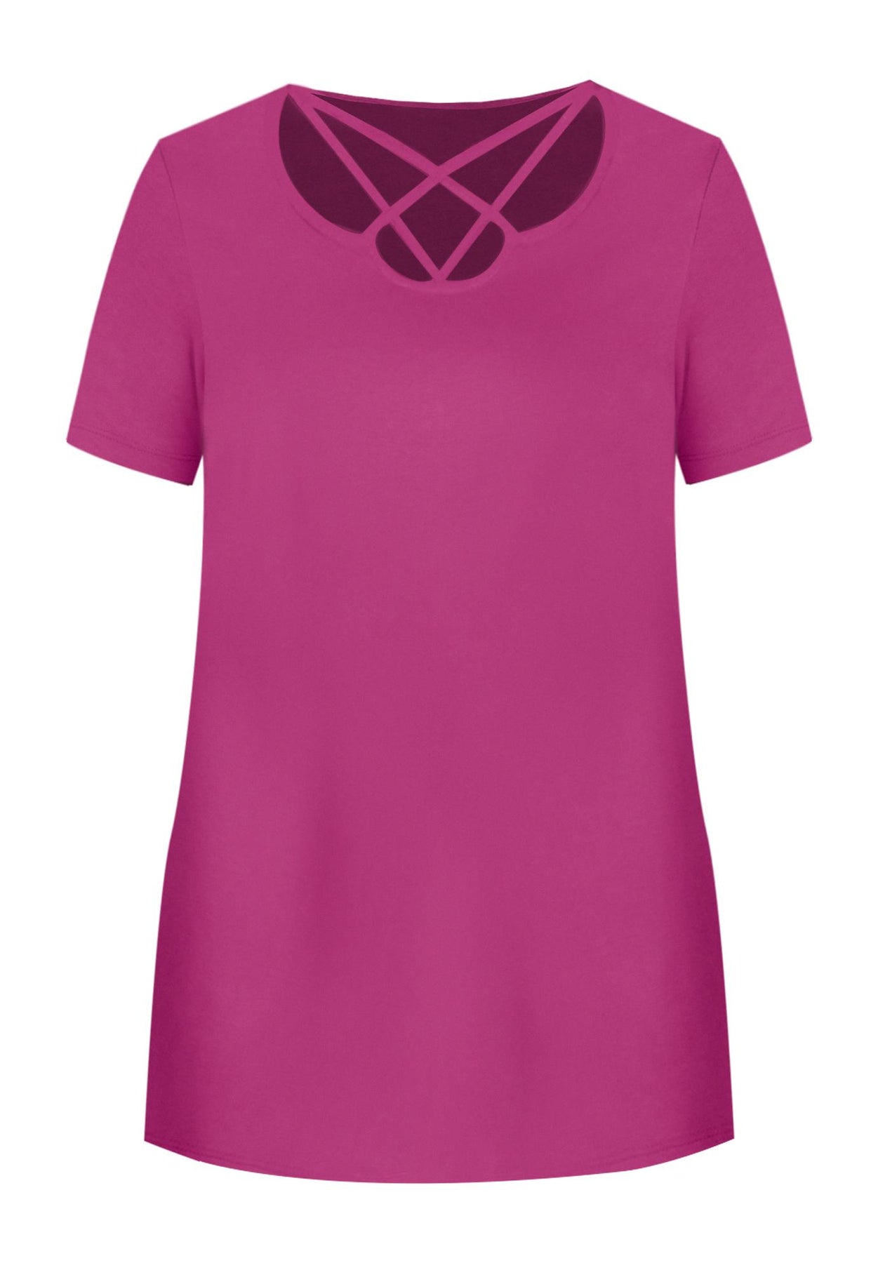 Cross our hearts, we know this short-sleeved tunic will be your next favorite. Cut for a comfortable, relaxed fit, it's detailed with a criss-cross lattice neckline and made from breathable fabric that layers easily, making it perfect for year-round wear.