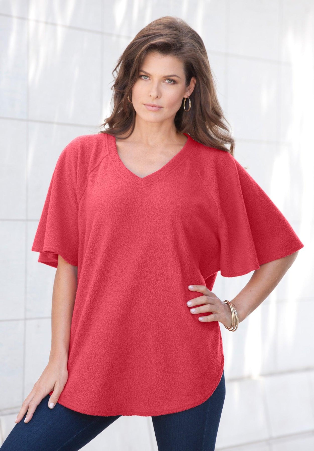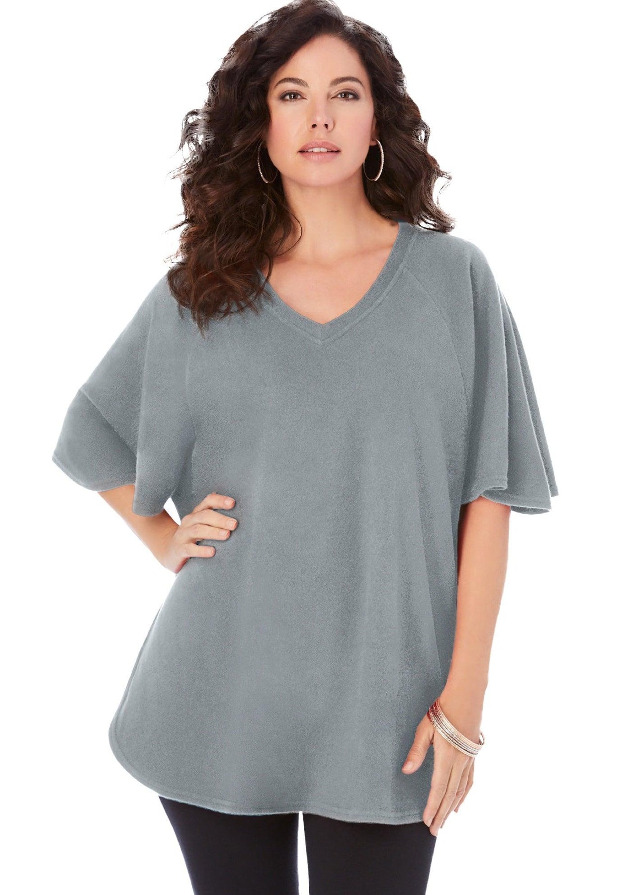 If it's softness you crave, you've come to the right tee. Batwing sleeves and rounded hem make this classic tee a fun addition to your wardrobe.