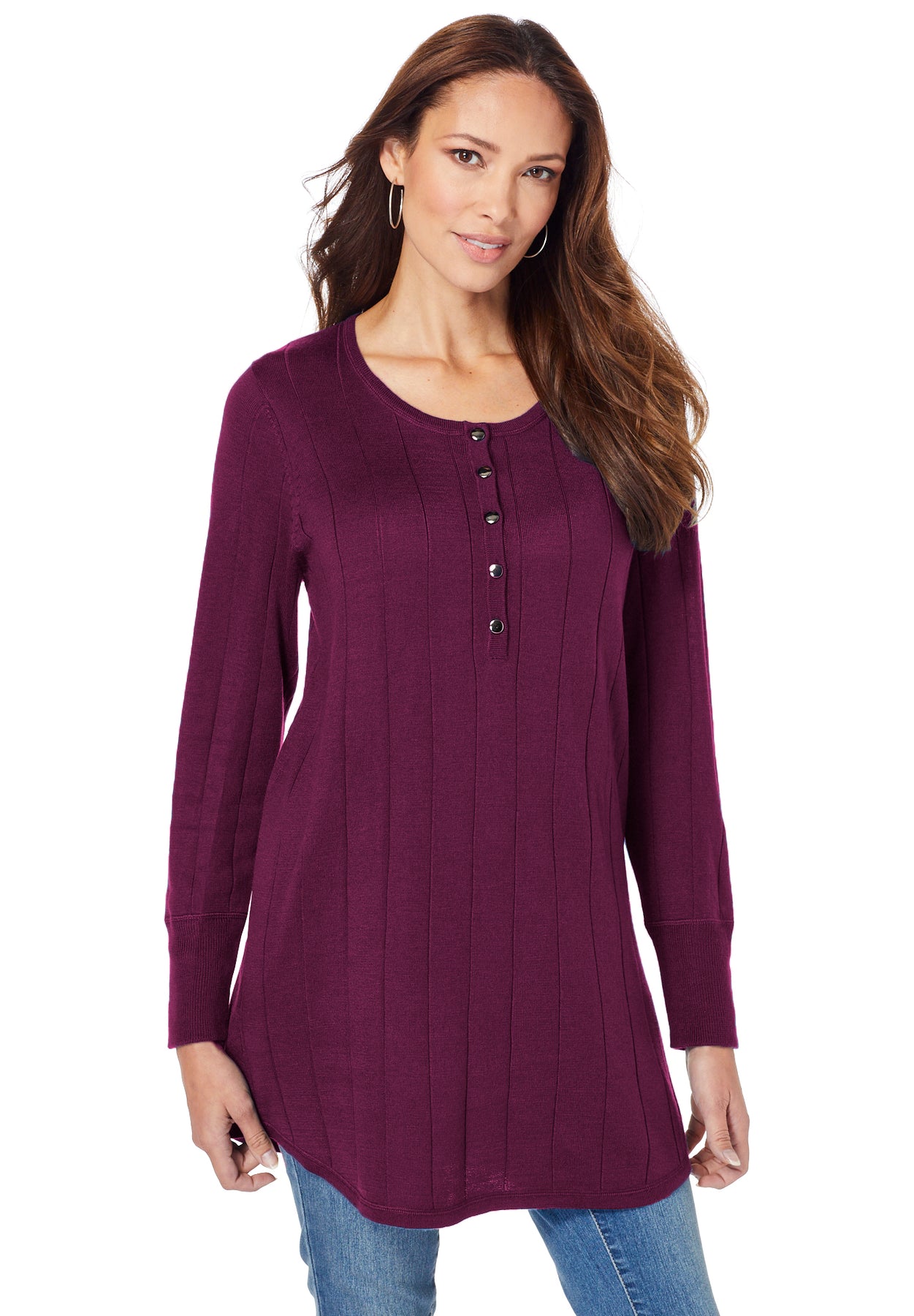 Plus Size Drop Needle Henley Lightweight Sweater Knit | Roaman&