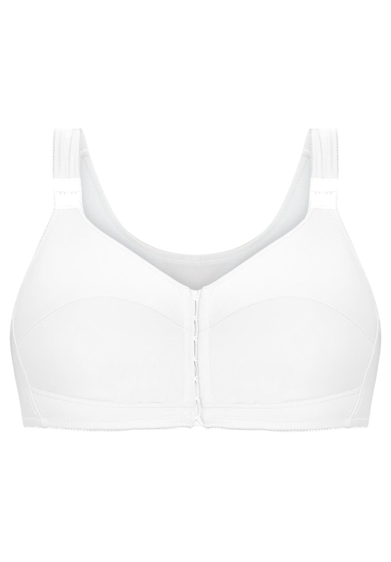 A wireless posture bra that also keeps you cool. The cooling microfiber fabric of this front-closure bra wicks away moisture to keep you fresh. Full coverage cotton-lined cups offer great support and comfort, and the signature crisscross power-mesh back delivers posture perfection.
