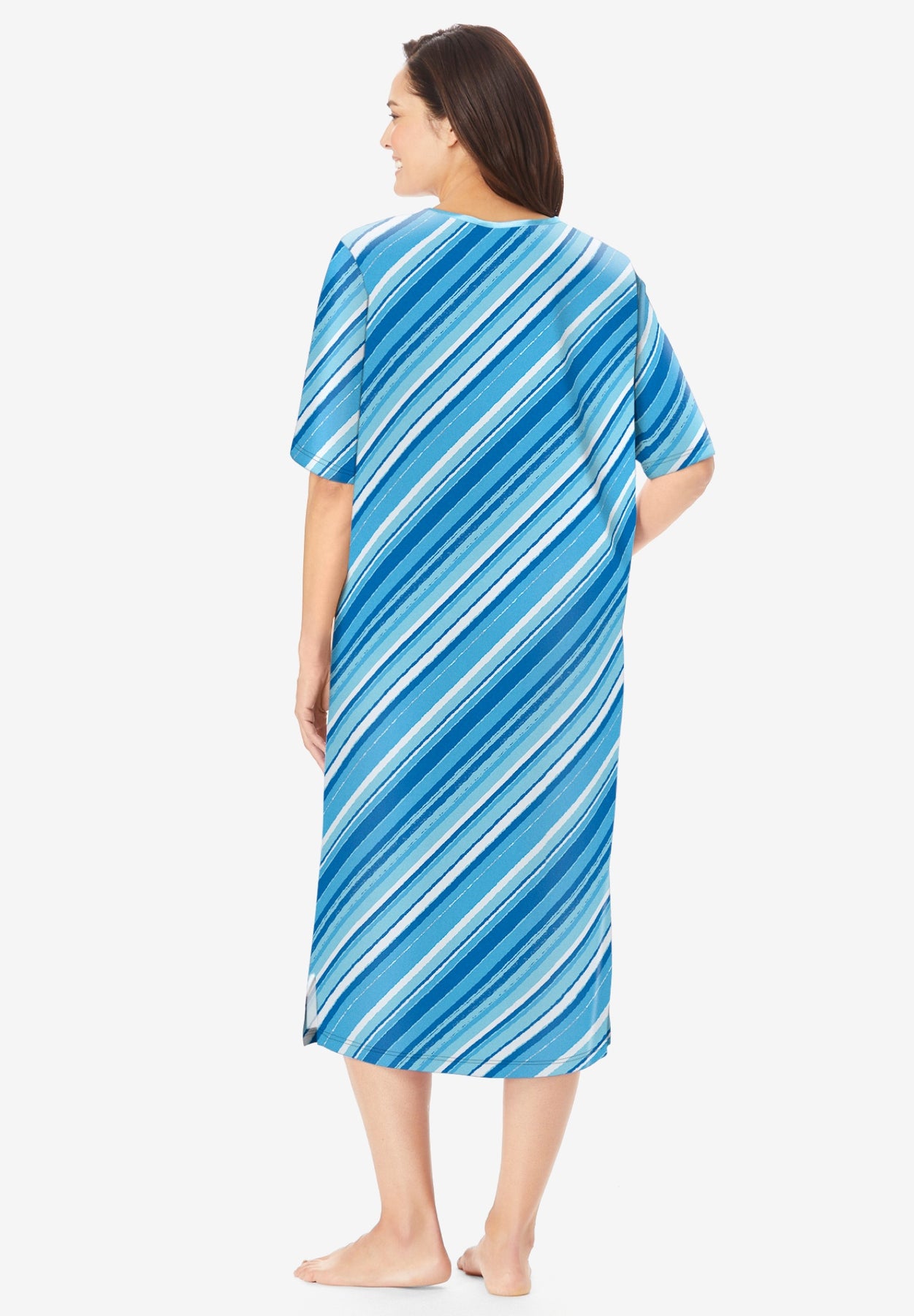 Sleep sound in our long, soft cotton sleepshirt. Scoop neckline with satin trim details and straight hem with side slits. 46" length.
