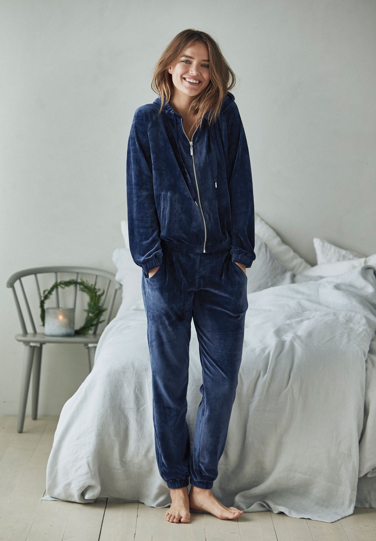 Casual meets sporty in this plush velvet sweatshirt with a cool grossgrain ribbon at the hood. It's the perfect way to update your relaxed basics collection.