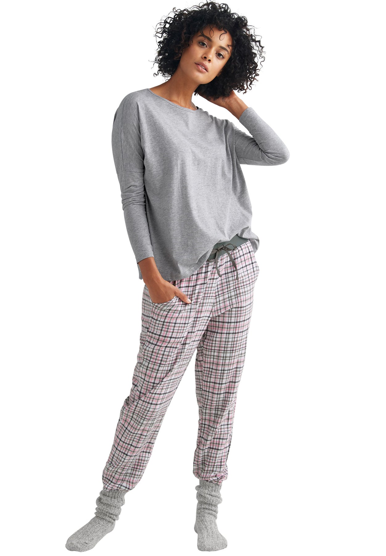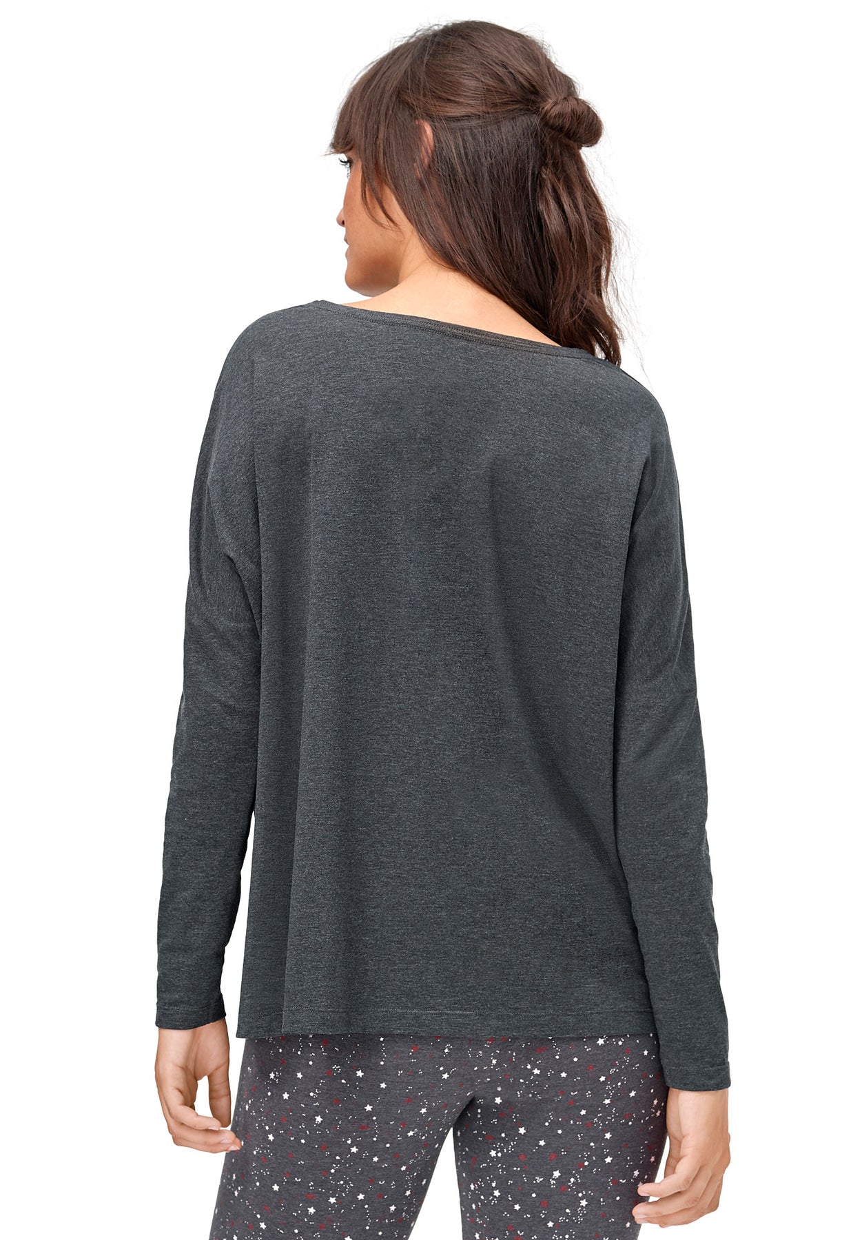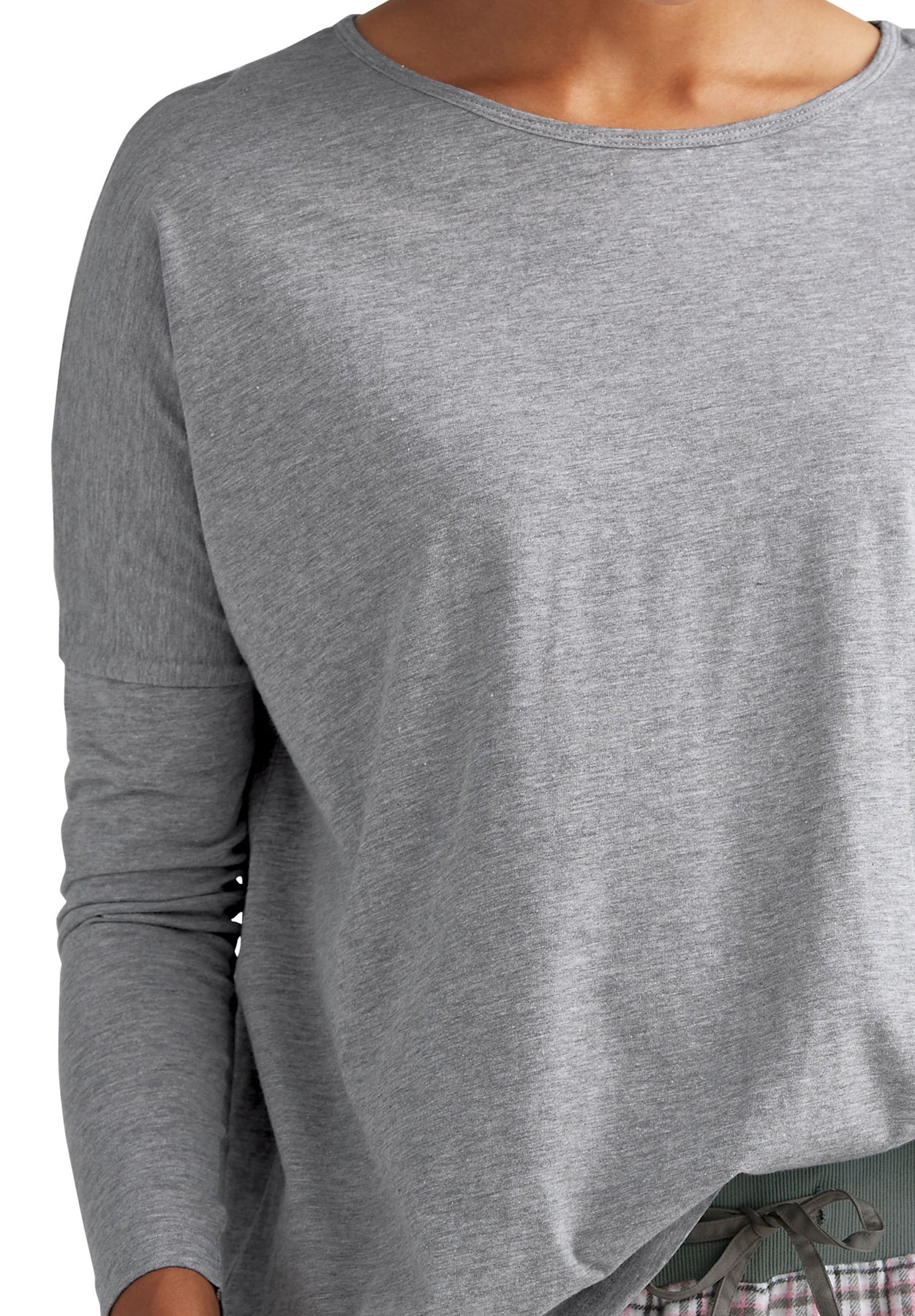 Soft & drapey with just the right amount of slouch, this tee will quickly become your favorite. Features a ballet neckline, long sleeves with drop shoulder. Pair it with our plaid pajamas.