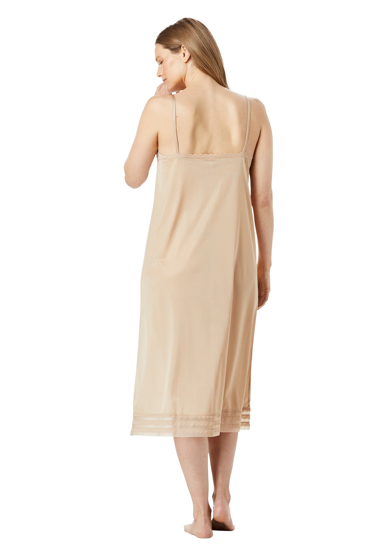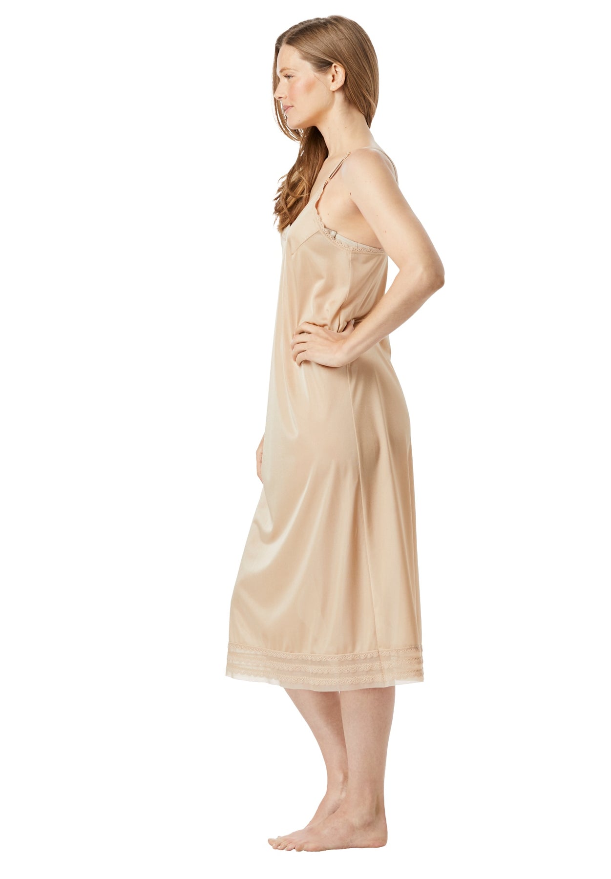 A straight silhouette with bust darts. Shortens 2" to 4" with scissors for a custom length.