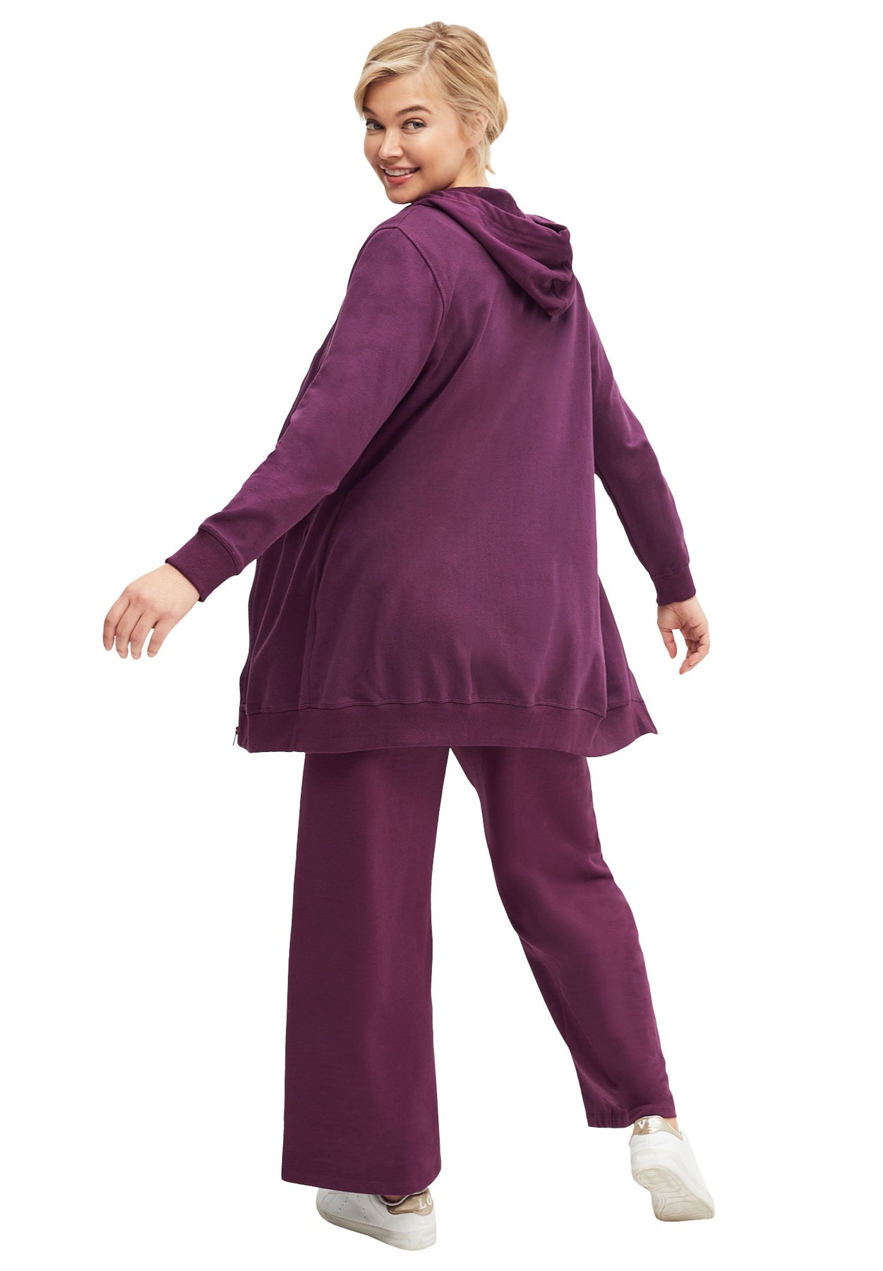 French Terry Long Sleeve Zip-Front Tunic Hoodie | Ellos Studio