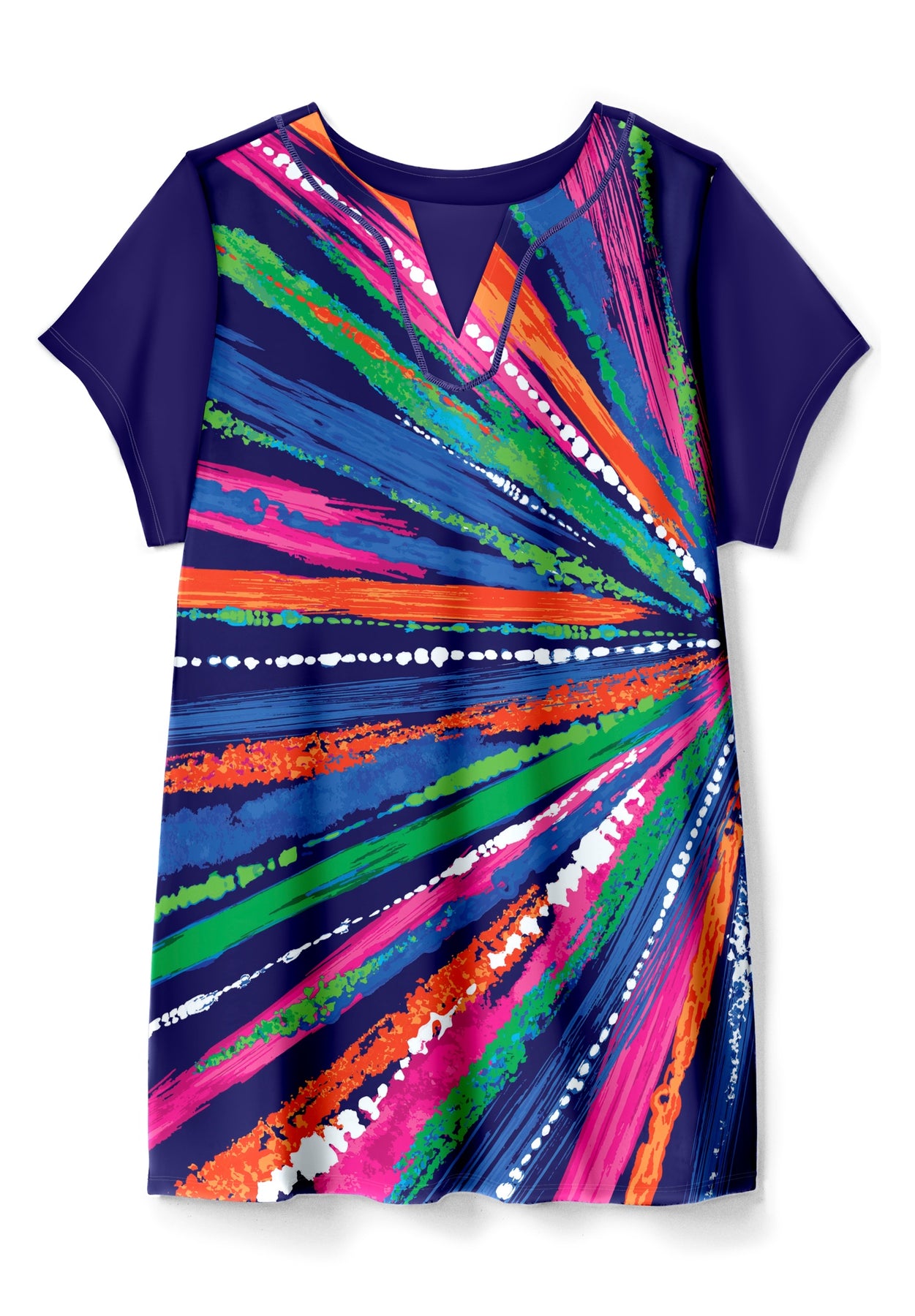 Experience all-day comfort and protection with our Longer Length Short-Sleeve Swim Tunic. Featuring a stylish notch neckline and longer length, it's a perfect style to wear over your favorite swimwear top.