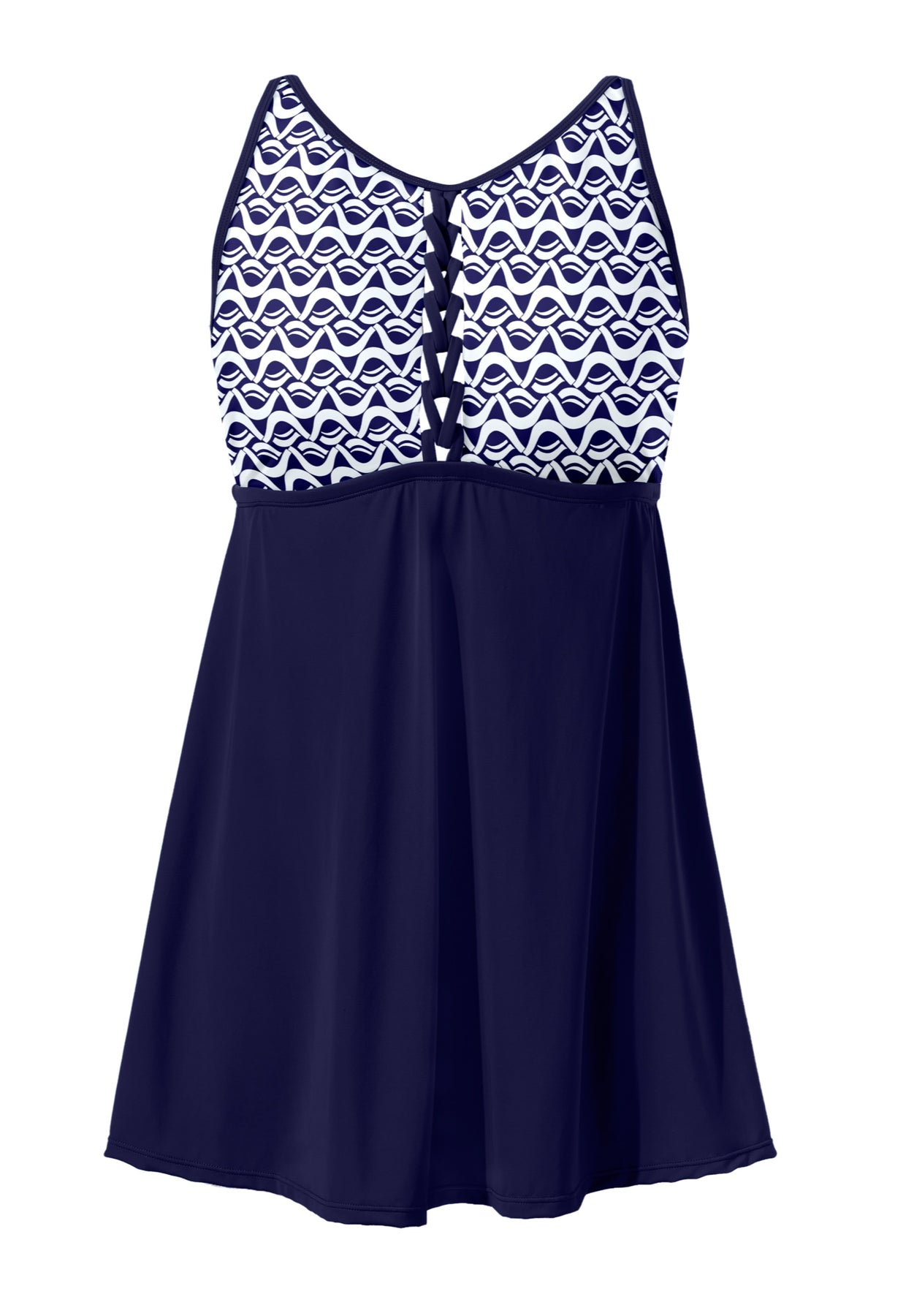 The comfort and coverage you love with fun fashion details—it’s all here in our Macrame High Neck Swimdress! This flattering silhouette has decorative lace-up macrame and is expertly constructed with a full one piece swimsuit underneath, plus built-in cups for support, Power Mesh tummy-control front lining for smooth shaping and adjustable straps for a customized fit.