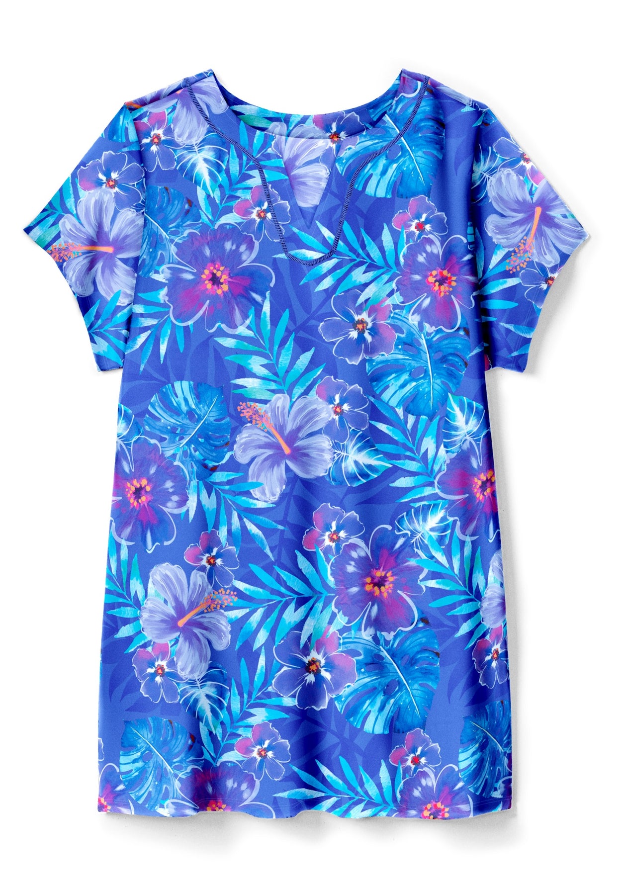 Experience all-day comfort and protection with our Longer Length Short-Sleeve Swim Tunic. Featuring a stylish notch neckline and longer length, it's a perfect style to wear over your favorite swimwear top.