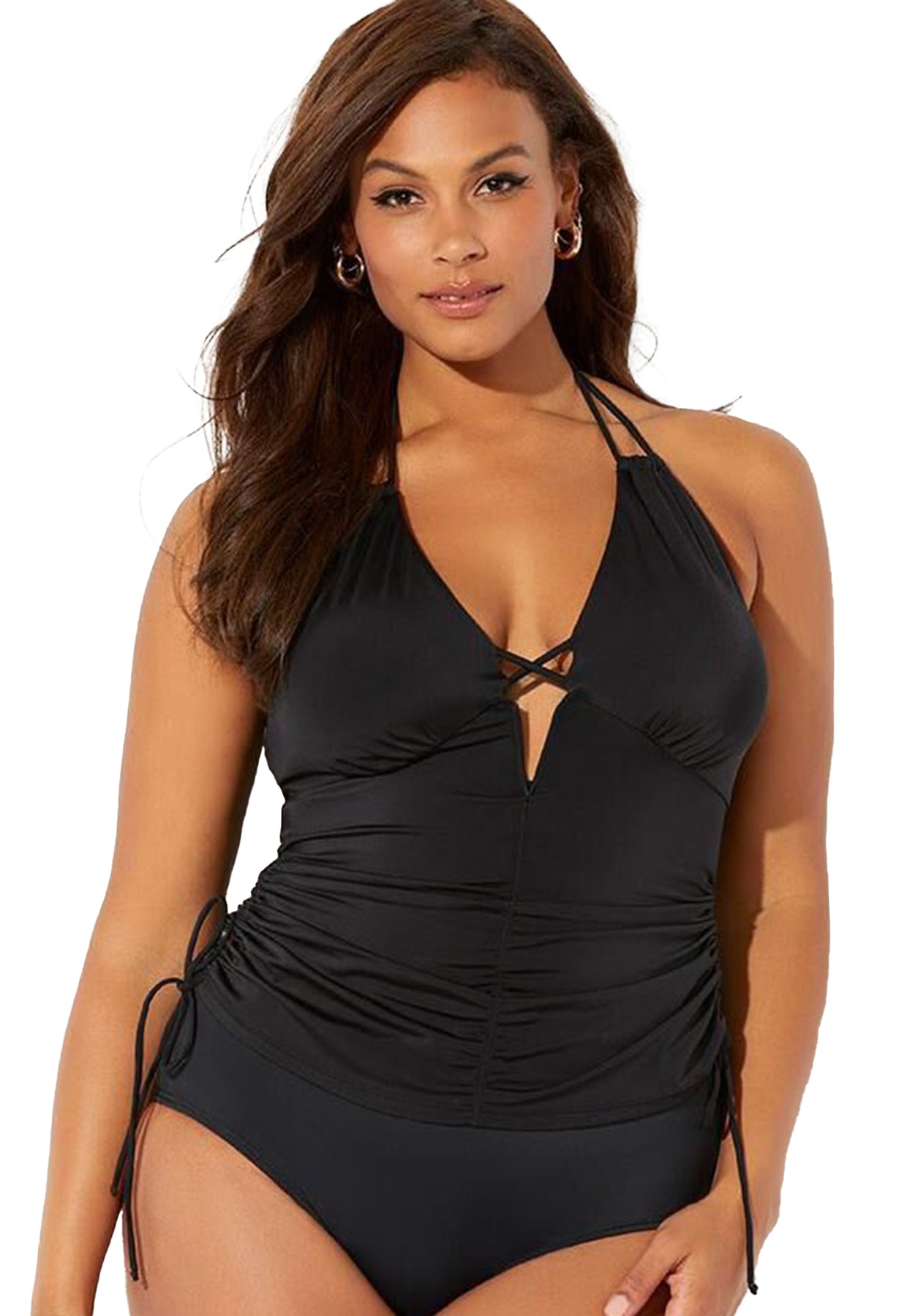 Love a plunging V-neckline? Then this tankini top was made for you! Expertly designed for incredible style, support and adjustability, this show-stopping top is sure to heat up your beach day look. Wire-free cups offers shaping and support while self-tie halter straps and side ties let you adjust to find your perfect fit. Pair with any swim bottom to create a customized look that suits you!