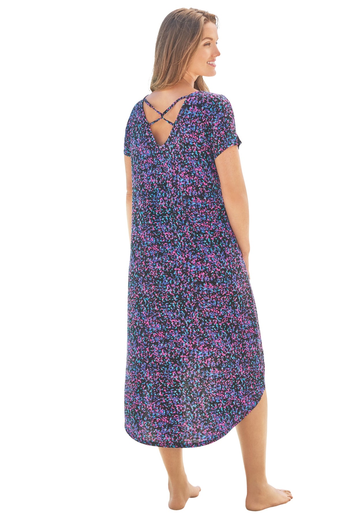 Lightweight and feminine, this coverup features a V-neck and crisscross details with a sweeping high-low hem.