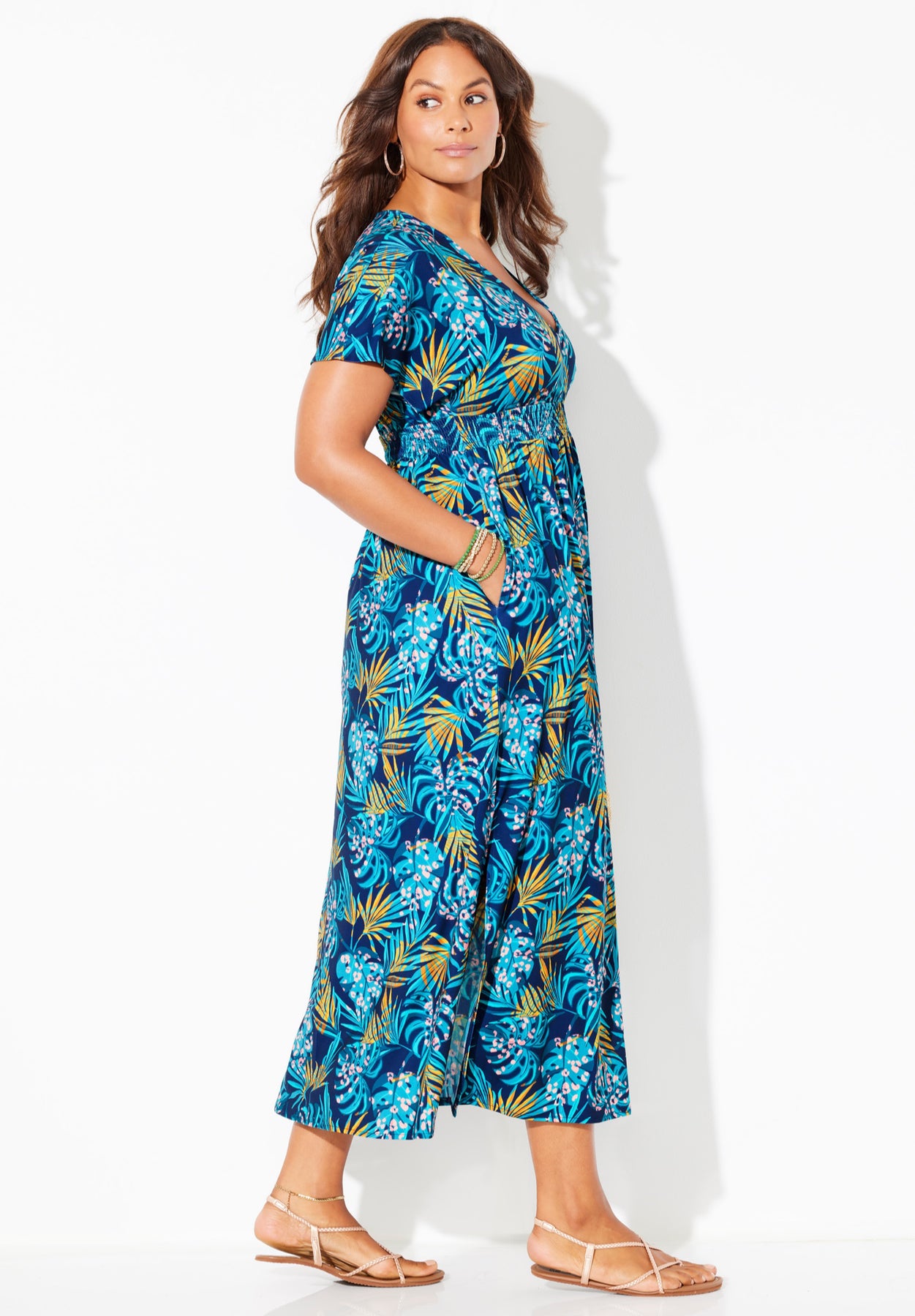 When a little move coverage and chicness is needed, slip this style over your favorite swimsuit and you’re good to go to your next beach or poolside hang. Styled with a V-neckline, smocking detail for shaping, and side seam pockets to hold sunscreen, cellphone, and other essentials. Ankle length. Wrinkle-resistant.