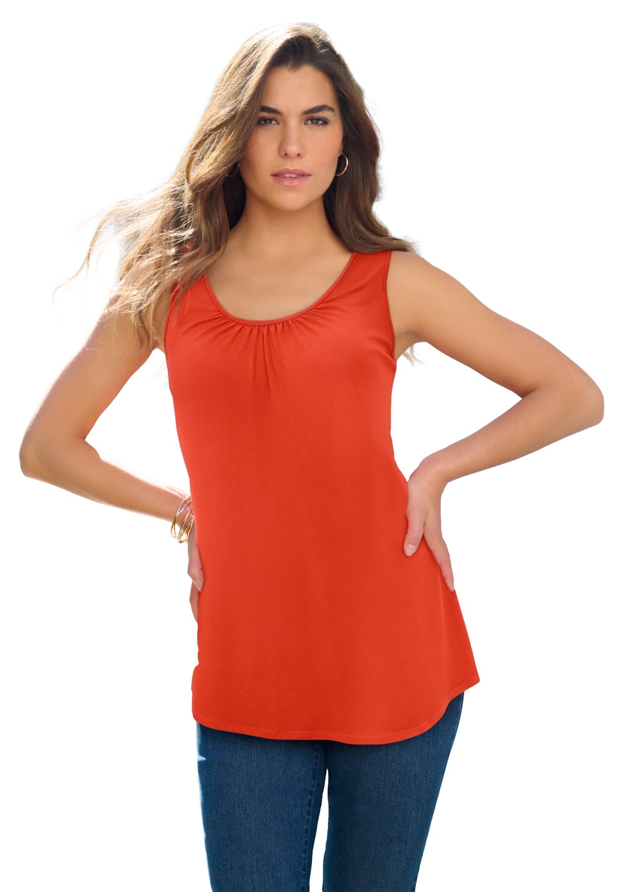 A classic tank top for every occasion: wear it solo or pair it under a cardigan. Its U neckline with center shirring adds pretty feminine detailing.