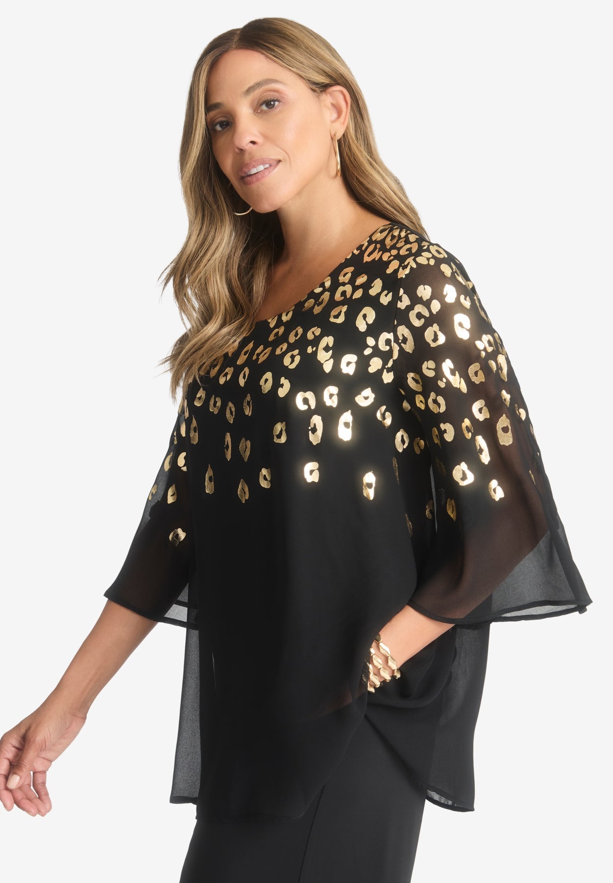 Delicate and feminine georgette overlay with tank underneath. Style it with everything from dress pants to leggings or a pencil skirt for a round-the-clock look.