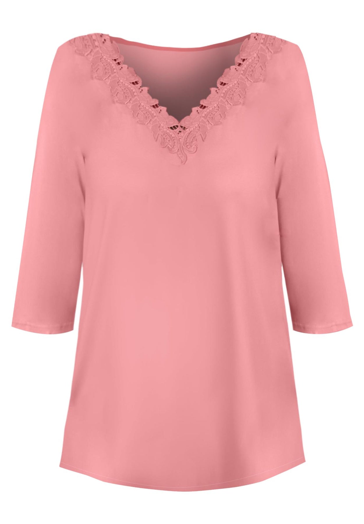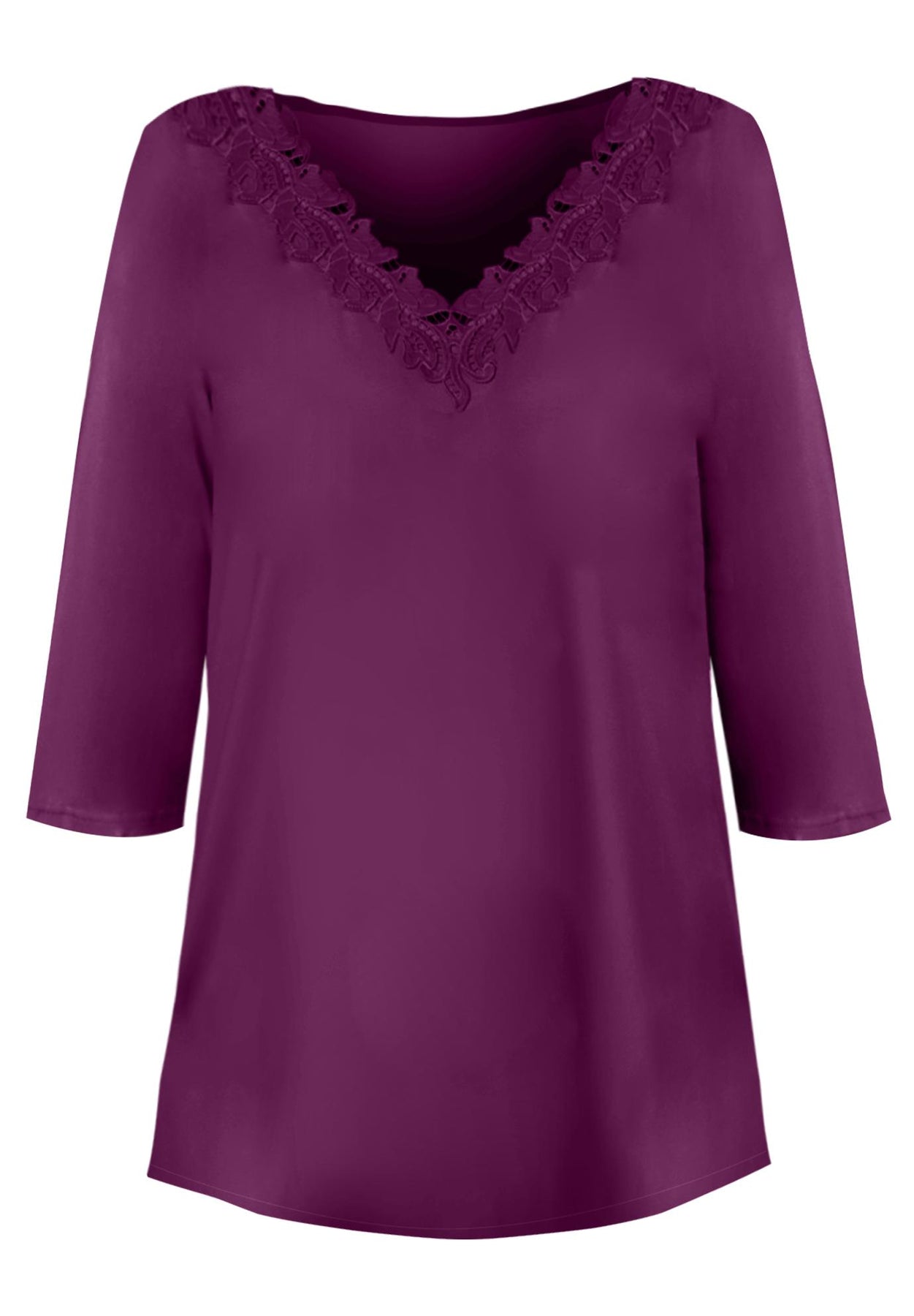 There's nothing that amps up the feminine feel of a design quite like lace, and this top has just the right amount. Designed with a flattering v-neckline, it has a slight flutter sleeve and straight silhouette.
