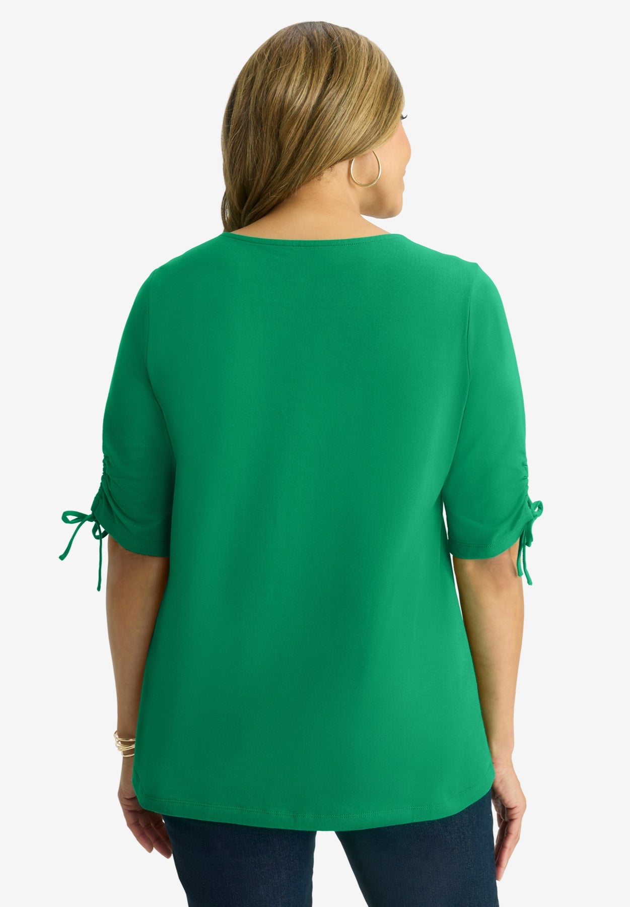 Stretch Cotton Tie Sleeve Square Neck Tee | Jessica London