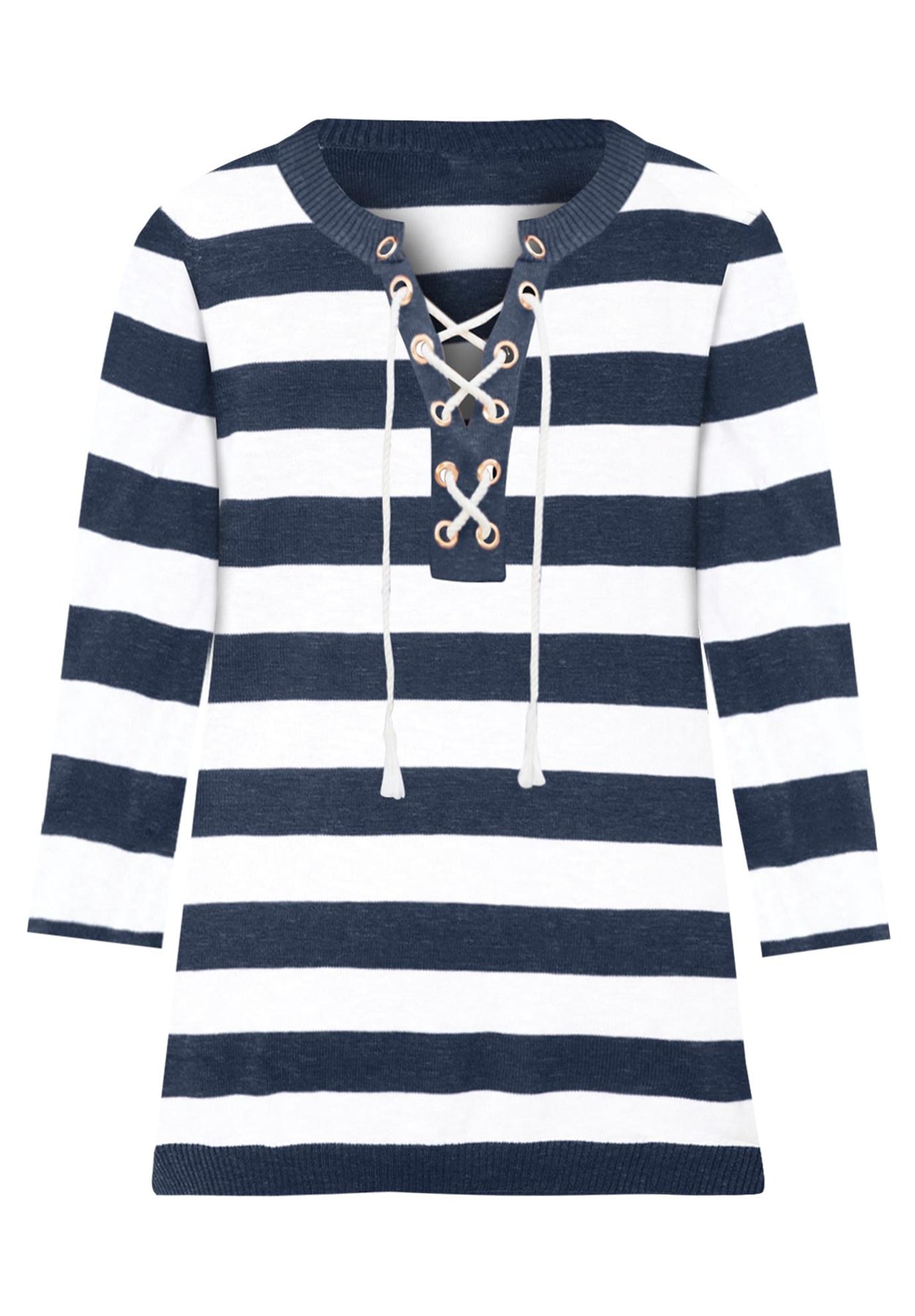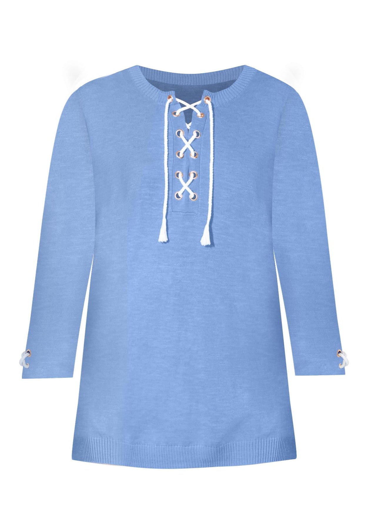 FIT: Relaxed fit with  ¾ sleeves, scoop neckline and lace-up detail.