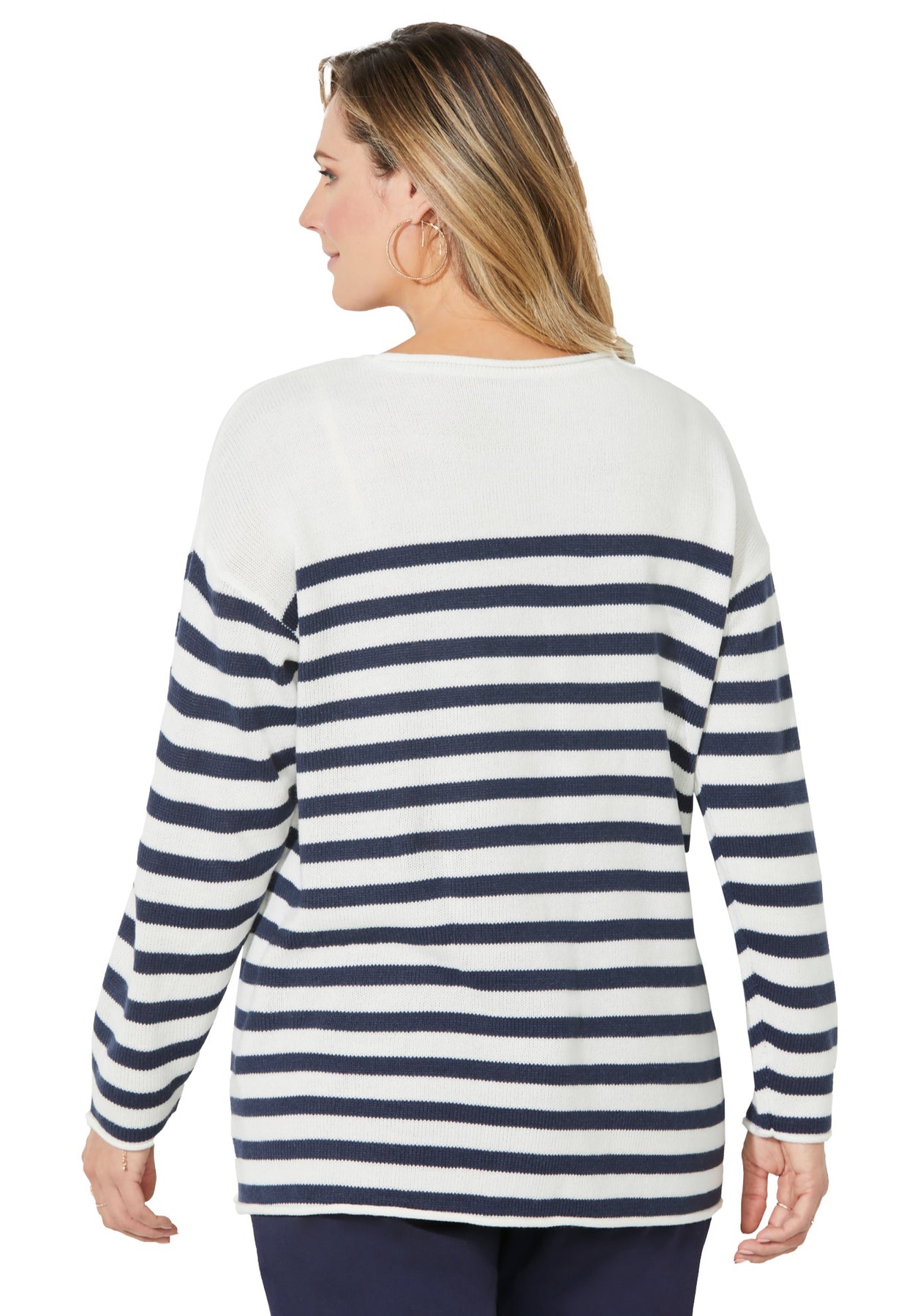 This easy sweater wins our most versatile piece (VIP!) award, thanks to classic stripes that work with everything in your wardrobe. Pair it with black pants, Sateen Stretch and virtually any of our jeans.
