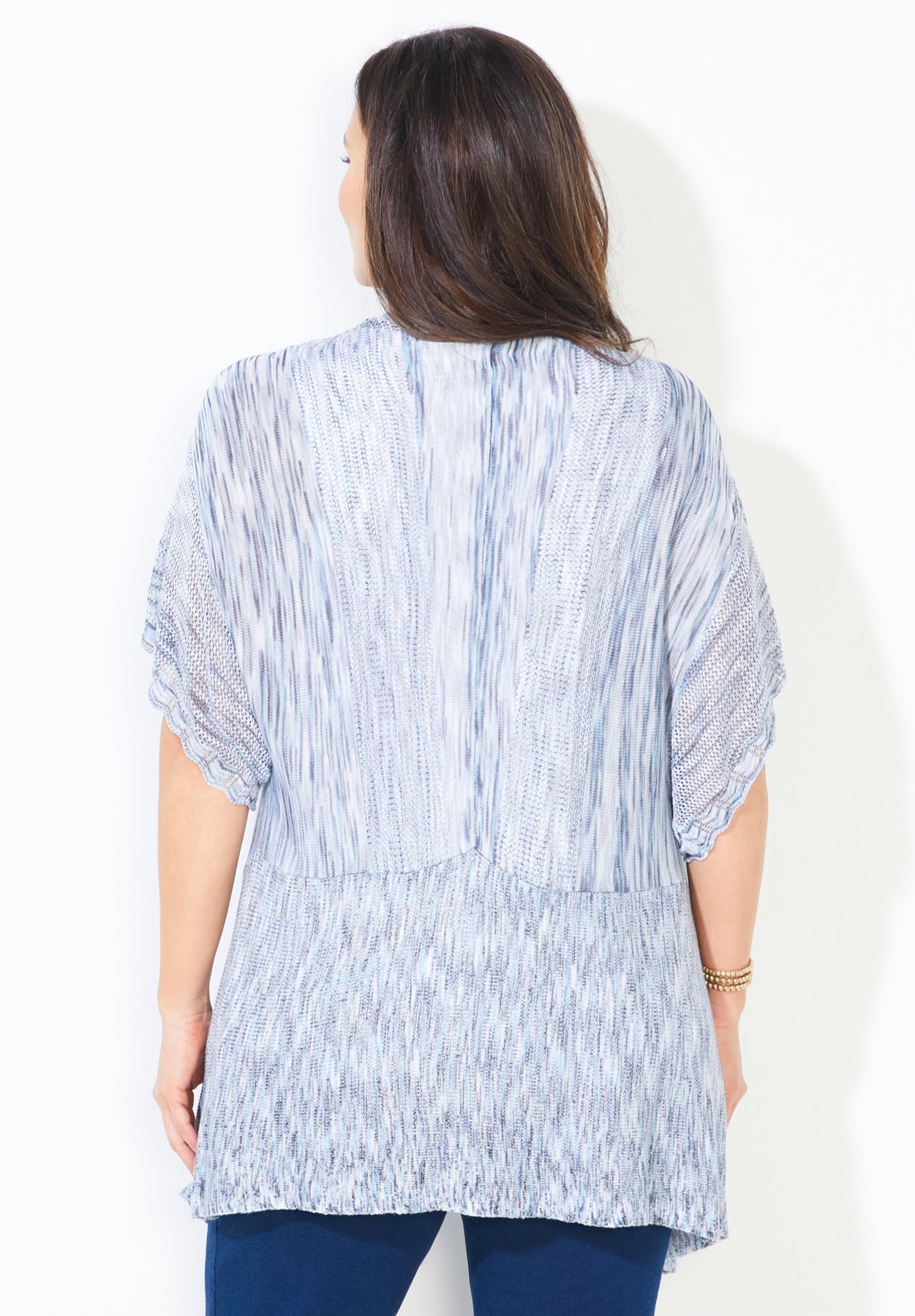 FIT: Easy silhouette with scalloped pointelle, short flutter sleeves.