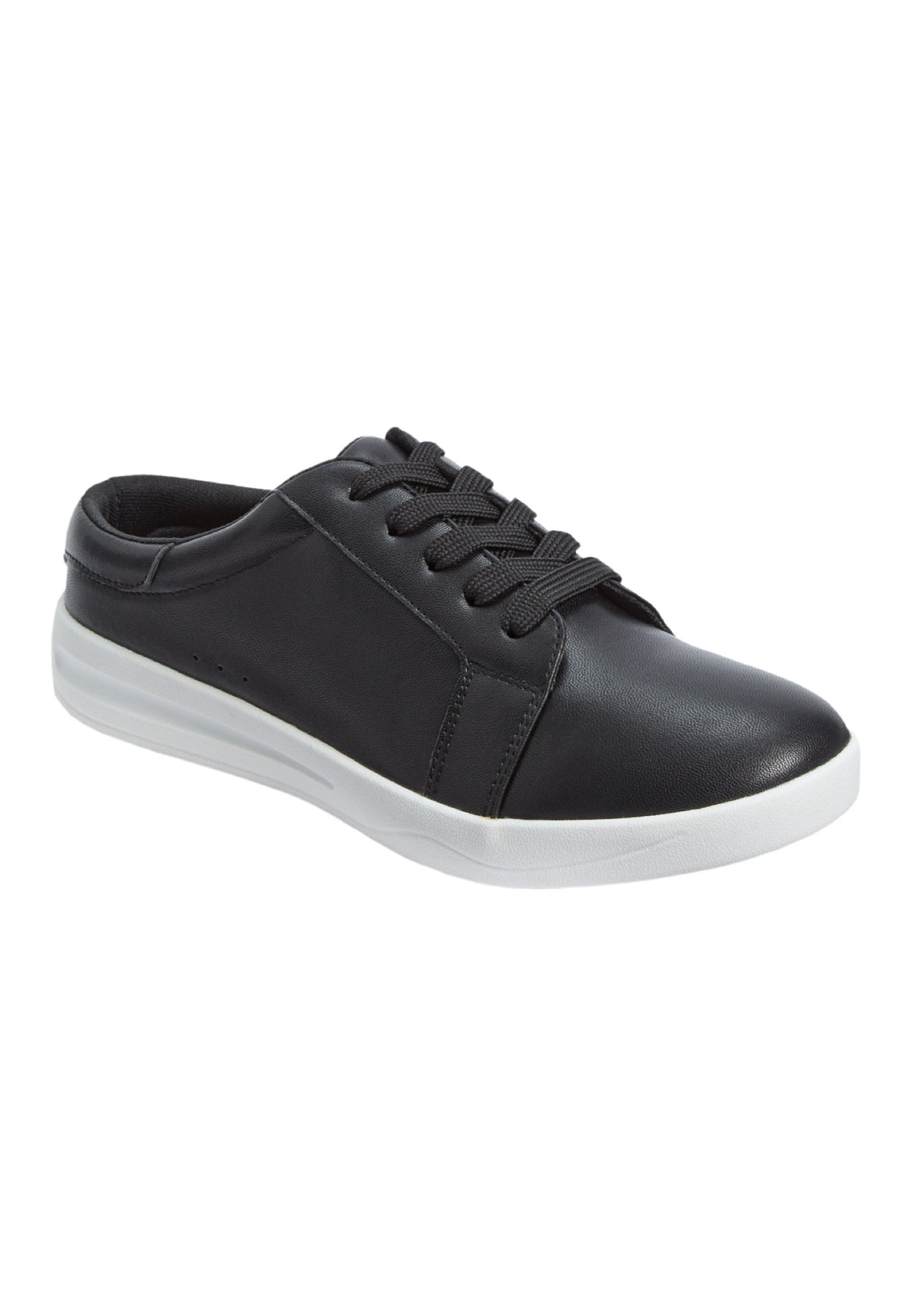 The best of what you love in your favorite sneaker, plus all the benefits of your favorite mule! This versatile pair features a leather-like upper with sweet multi-color fabric detail on the heel, plus adjustable laces for a secure fit.