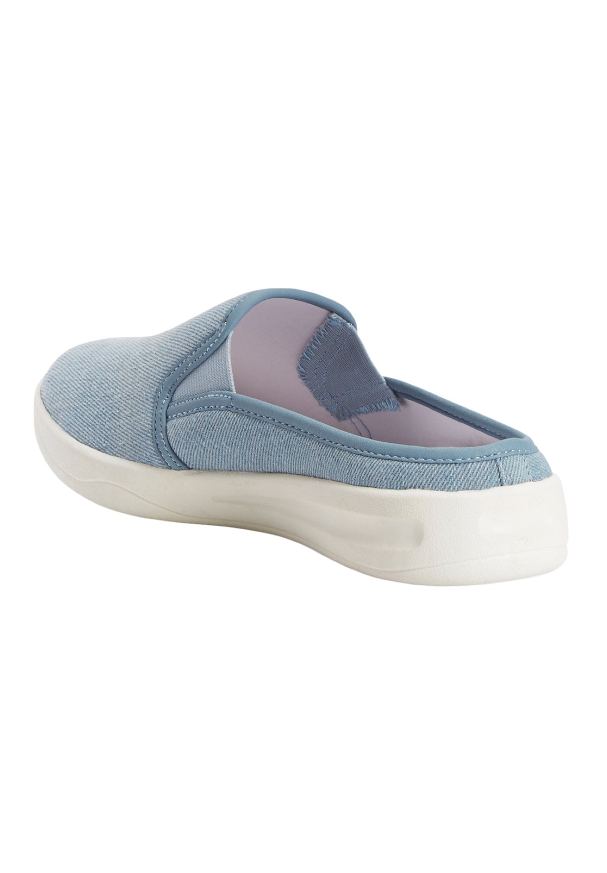 This stylish sneaker mule has a canvas or eyelet fabric upper with double side elastic gore for easy on and off.