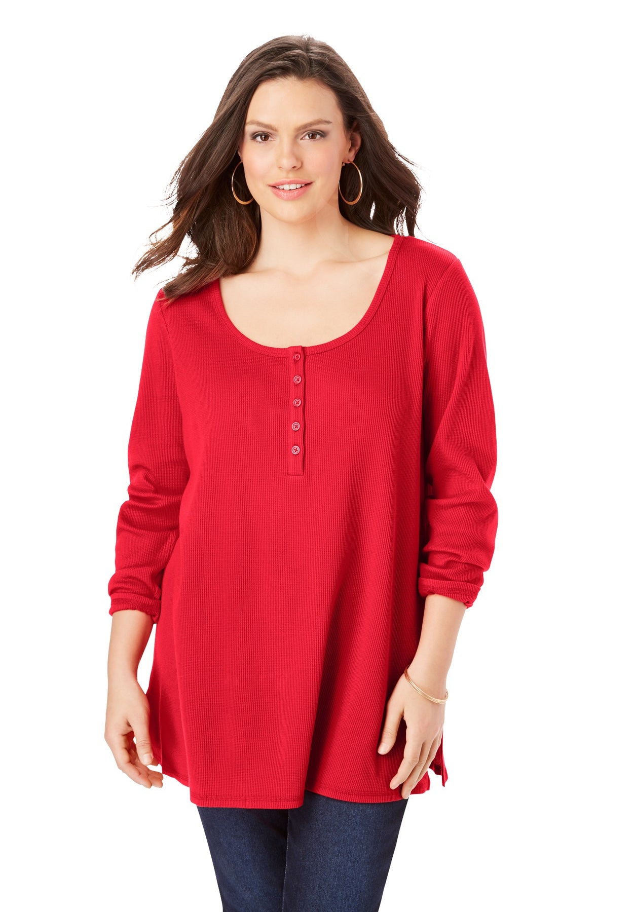 Plus Size Knit Thermal Henley Top – Long Sleeve